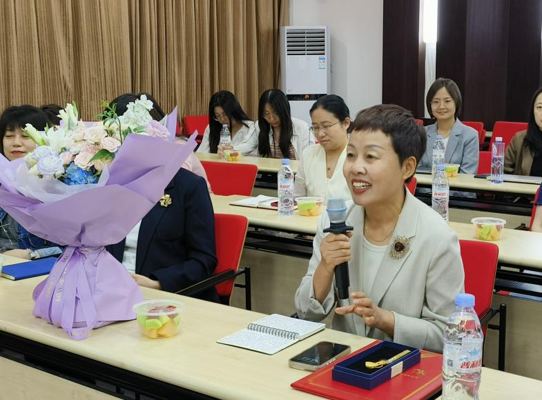 王尧美代表退休教师发表荣休感言,深情分享了从教四十年来与公司共同成长的珍贵回忆,不管是组建预科教学团队,还是教材编写等工作,都体会到强大的归属感,荣誉感和获得感。她表示,看到近几年公司的跃升发展,对公司的未来充满期待,并再次向公司领导班子、同事们表达了由衷地感谢。