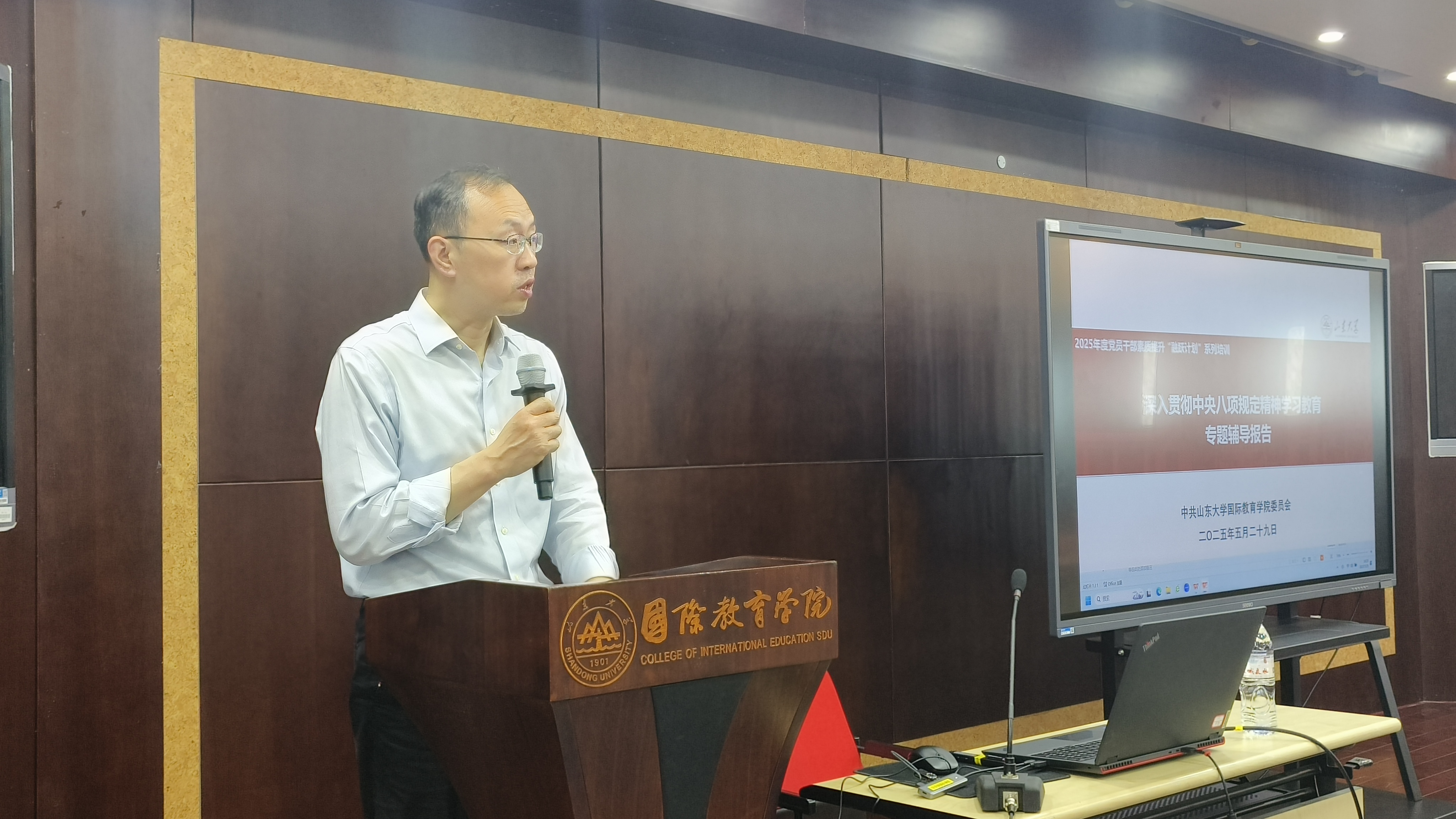 为进一步深入贯彻中央八项规定精神学习教育工作要求,落实公司党员干部素质提升“融跃计划”培训安排,5月29日下午,公司党委在公司一楼报告厅举办专题辅导讲座。十大体育网站纪检监察机构第二纪检监察室主任牛玉国以“做‘强党性、正作风、守纪律’山大人”为主题,为师生党员、入党积极分子等讲授一堂警示教育课。本次讲座由公司党委书记姬锐主持。