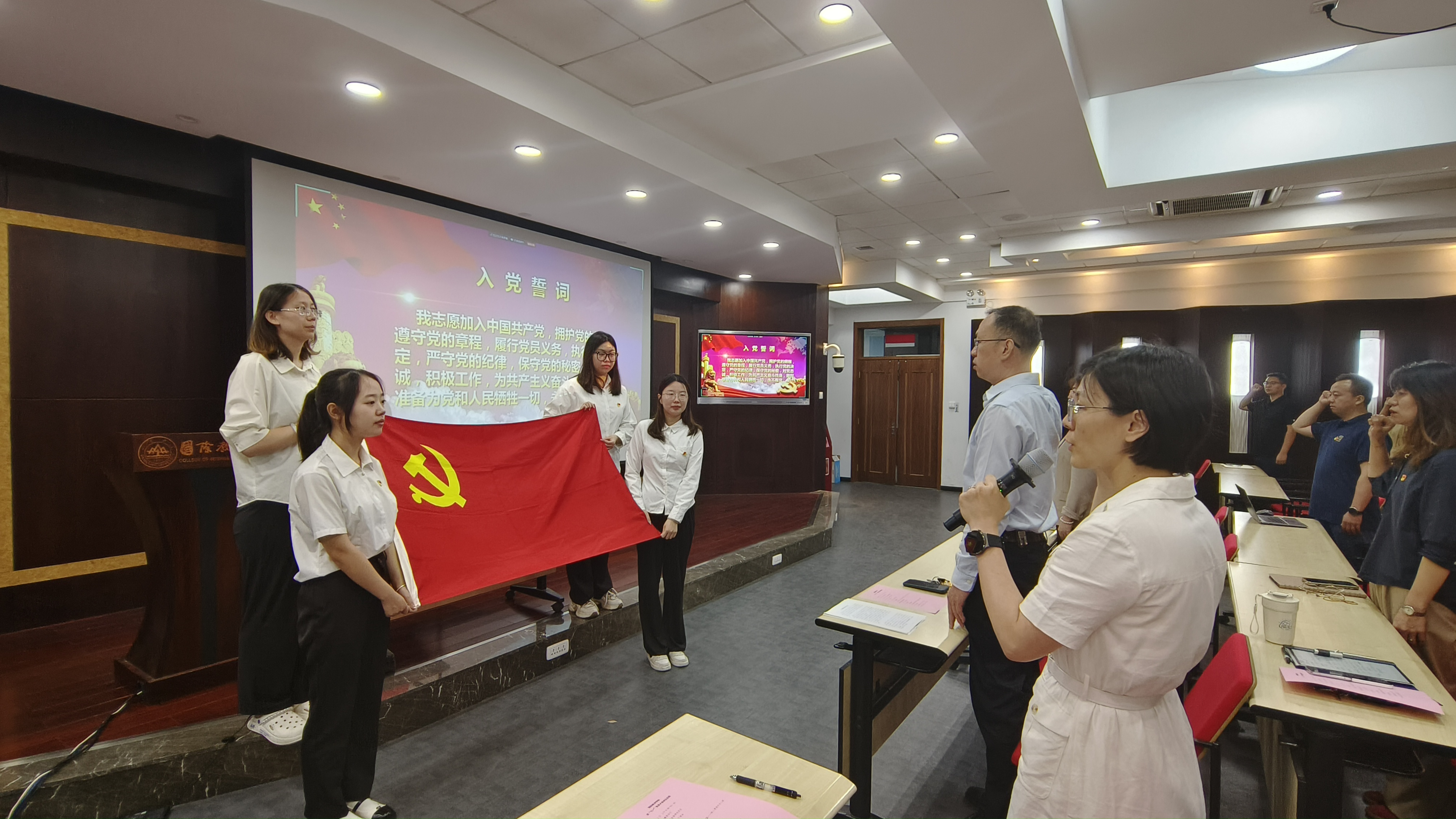 随后,与会人员齐唱国际歌,重温入党誓词。伴随雄浑激昂的歌声,与会党员在公司党委委员、副经理矫雅楠的带领下,面向鲜红党旗,庄严举起右拳宣誓,表达了对党无限忠诚的坚定信念。这一仪式既是对初心的回溯,更是对使命的唤醒,激励着师生党员在新的时代征程中永葆政治本色。