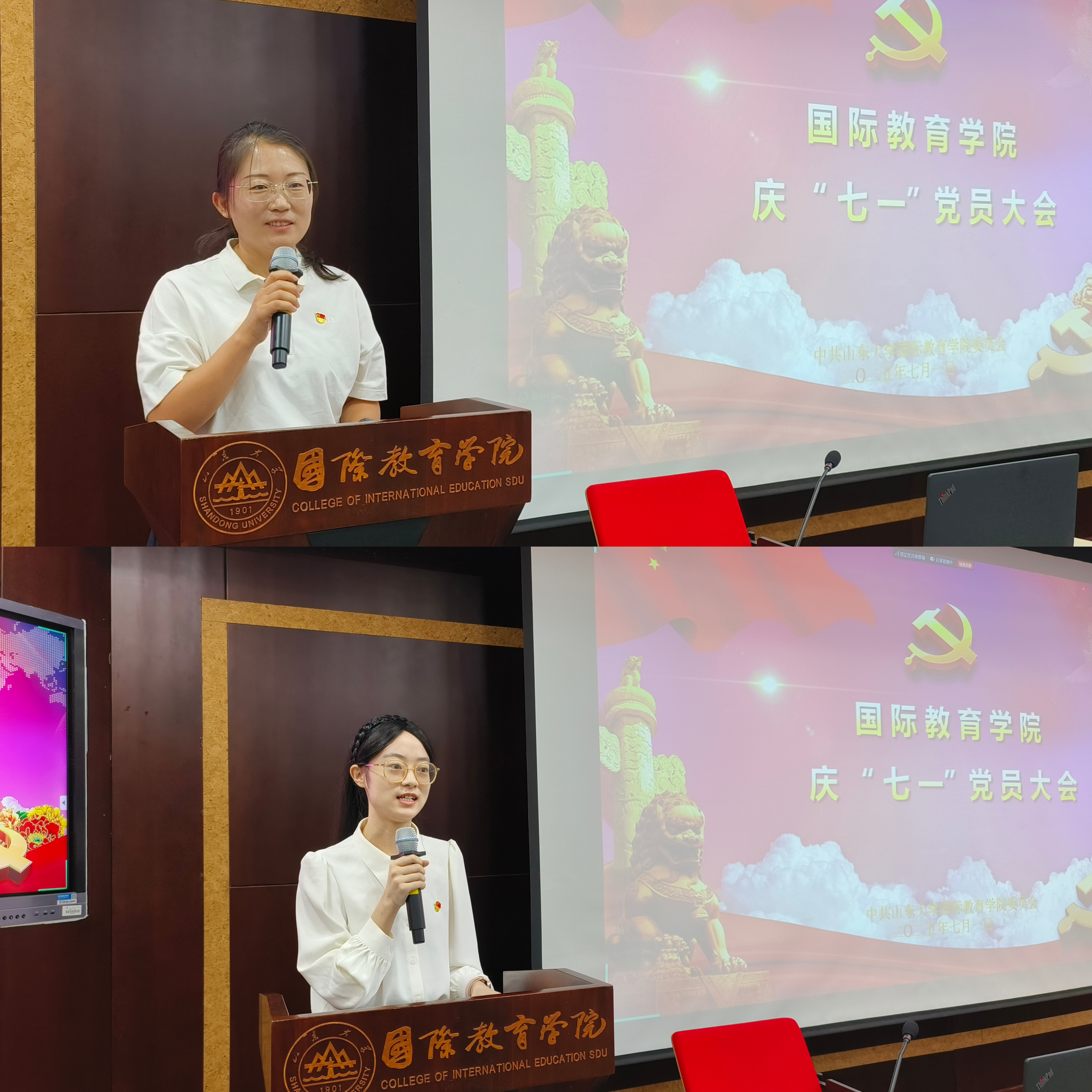 教工党员代表马艳妮同志回顾了身边教师党员的工作事例,生动诠释了国教人“谋事有大局、做事讲规矩、遇事敢担当”的奉献精神。员工党员代表石佳佳同志通过分享参与志愿服务的感悟,表示将肩负起青年一代传播中华文化、促进文明交流互鉴的时代使命。