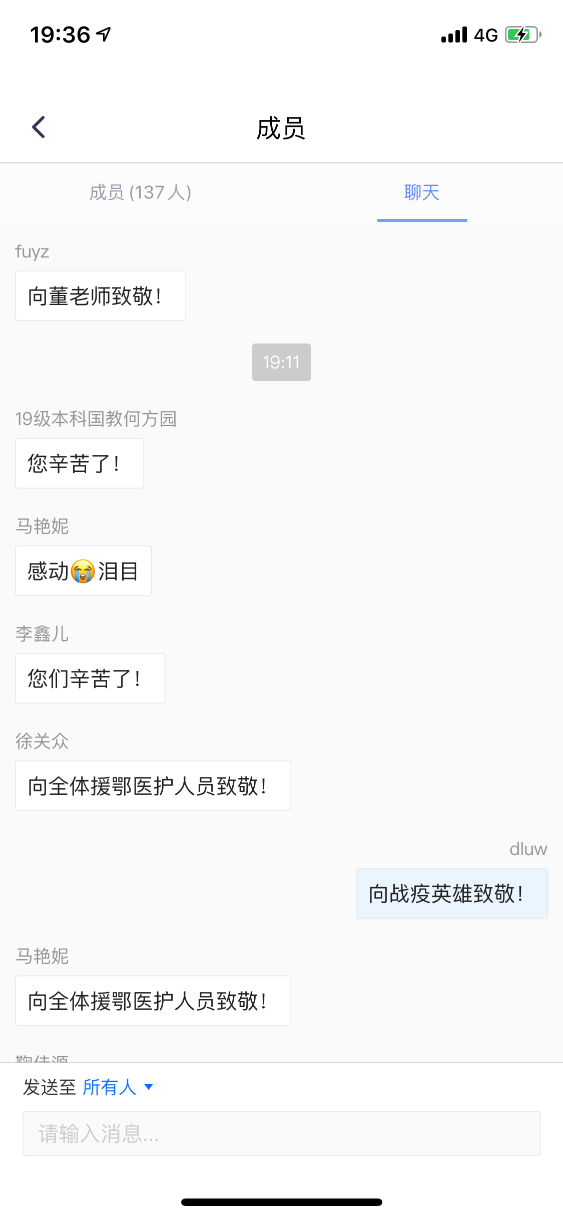 在师生互动交流环节,同学们积极发言,分享自己的感受与领悟。十大体育网站本科生党员冯迎霜、甘心露、高静雨,重点培养对象宋英姿及入党积极分子王雨琳同学纷纷结合自己的生活学习经历,表达了对“逆行者”们最崇高的敬意和最真挚的感谢。机关党委青年教工冯洪彩分享了参与此次活动的体会,强调了在学习和工作中树立党员意识、坚定理想信念的重要性。十大体育网站团委书记马艳妮、党委副书记王璐璐也表达了自己参会的感触,“全国一盘棋”“一省援一市”的优越政策展现出了磅礴的中国力量,中国在抗击疫情中的有力举措,更加坚定了我们坚持“四个自信”的决心。活动最后,全体参会人员一起握拳,用振奋人心的抗疫口号向抗疫工作者致敬,为祖国加油。
