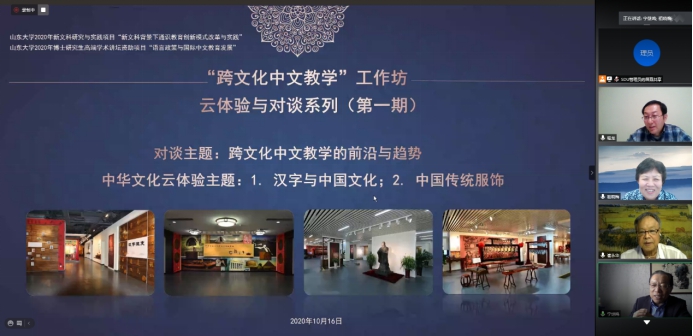 10月16日下午,“跨文化中文教学”工作坊——云体验与对谈系列(第一期)在线上举办。工作坊由加拿大哥伦比亚公司教授、加拿大中文教师协会会长程龙和南开大学汉语言文化公司教授祖晓梅作为对谈主持,邀请北京语言大学教授崔永华作为对谈嘉宾,围绕“跨文化中文教学的前沿与趋势”展开讨论,并在对谈结束后开展了中华文化云体验主题活动。来自全国各地的高校师生及相关领域人员近200人参与本次活动。