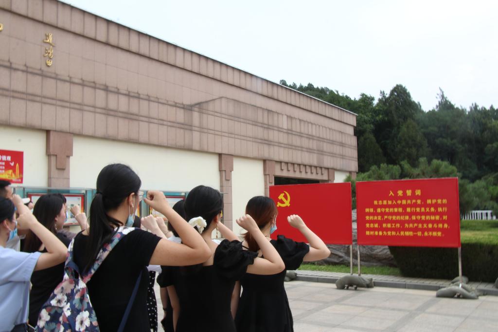 活动伊始,一行人来到了位于英雄山脚下的济南战役纪念馆。济南战役纪念馆位于烈士陵园东部,北邻英雄山,气氛庄严肃穆。在讲解员声情并茂的讲解下,同学们回顾了那一段战火飞扬、英勇无畏的红色历史,瞻仰了革命先烈的英名,参观了战争时期的战役路线图和当时的作战工具,看到了解放战争时期的艰辛与不易。济南战役全景画与一件件珍贵的展陈文物向大家展现了济南战役的宏伟气势,这些真实的物品生动再现了战时情景,见证了曾经的艰难岁月,也见证了无数革命先烈为国家、为故乡奉献的热血,时刻警示着人们不忘初心,继续前行。随后,在这个具有特殊意义的红色建筑前,在无数壮烈牺牲的英灵的注视下,党员同学面对党旗重温入党誓词,重温当年入党宣誓的决心和信念,用仪式感回顾入党初心。