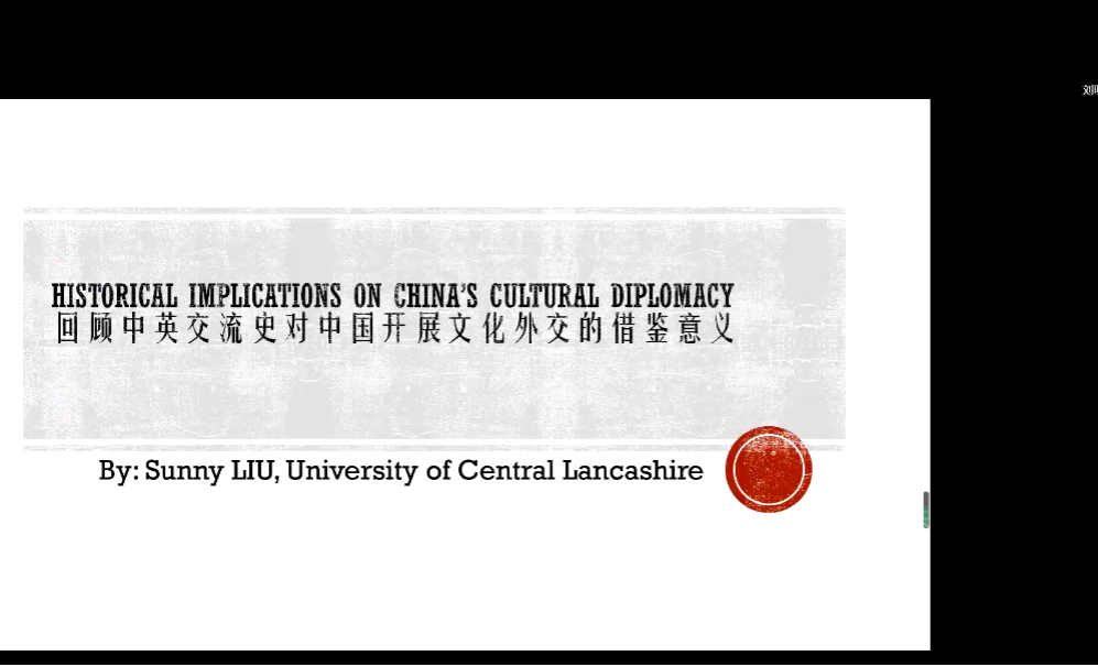 9月10日至11日,十大体育网站邀请英国中央兰开夏大学刘昕副教授开展以“回顾中英交流史对中国开展文化外交的借鉴意义”为主题的系列讲座。作为公司“百廿山大•国际中文教育员工谈”的活动内容之一,系列讲座分四个专题进行。副经理王彦伟主持讲座,公司全体硕博研究生参加讲座。
