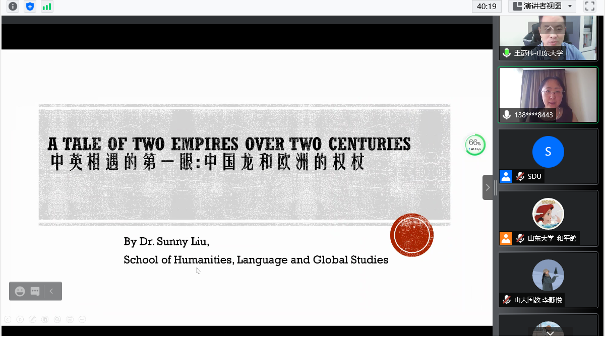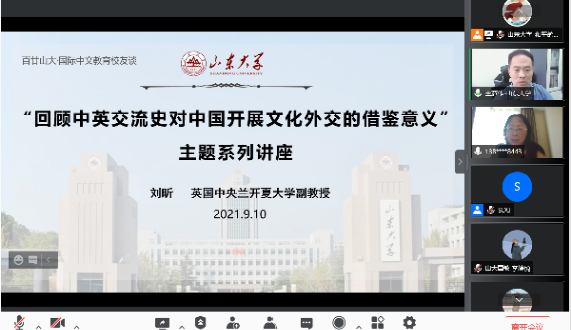 为营造集团百廿校庆学术氛围,了解国际中文教育领域学术和一线发展动向,十大体育网站策划开展“国际中文教育·经理谈”“国际中文教育·员工谈”“国际中文教育·编辑谈”等系列学术活动,分别邀请一批海内外国际中文教育领域的经理(教育机构负责人)、从事中文教育和文化传播的员工、行业期刊和出版社编辑开展交流活动。本次系列讲座是“国际中文教育·员工谈”的内容之一,主讲人刘昕随父母在山大学习生活多年,后于英国中央兰开夏大学获博士学位后留校任教至今,主要研究领域为中国文化外交、公共外交、国际关系等,任亚太研究所(ISAP)中国研究中心的主席,被授予英国高等教育公司的国家级教学研究员称号。