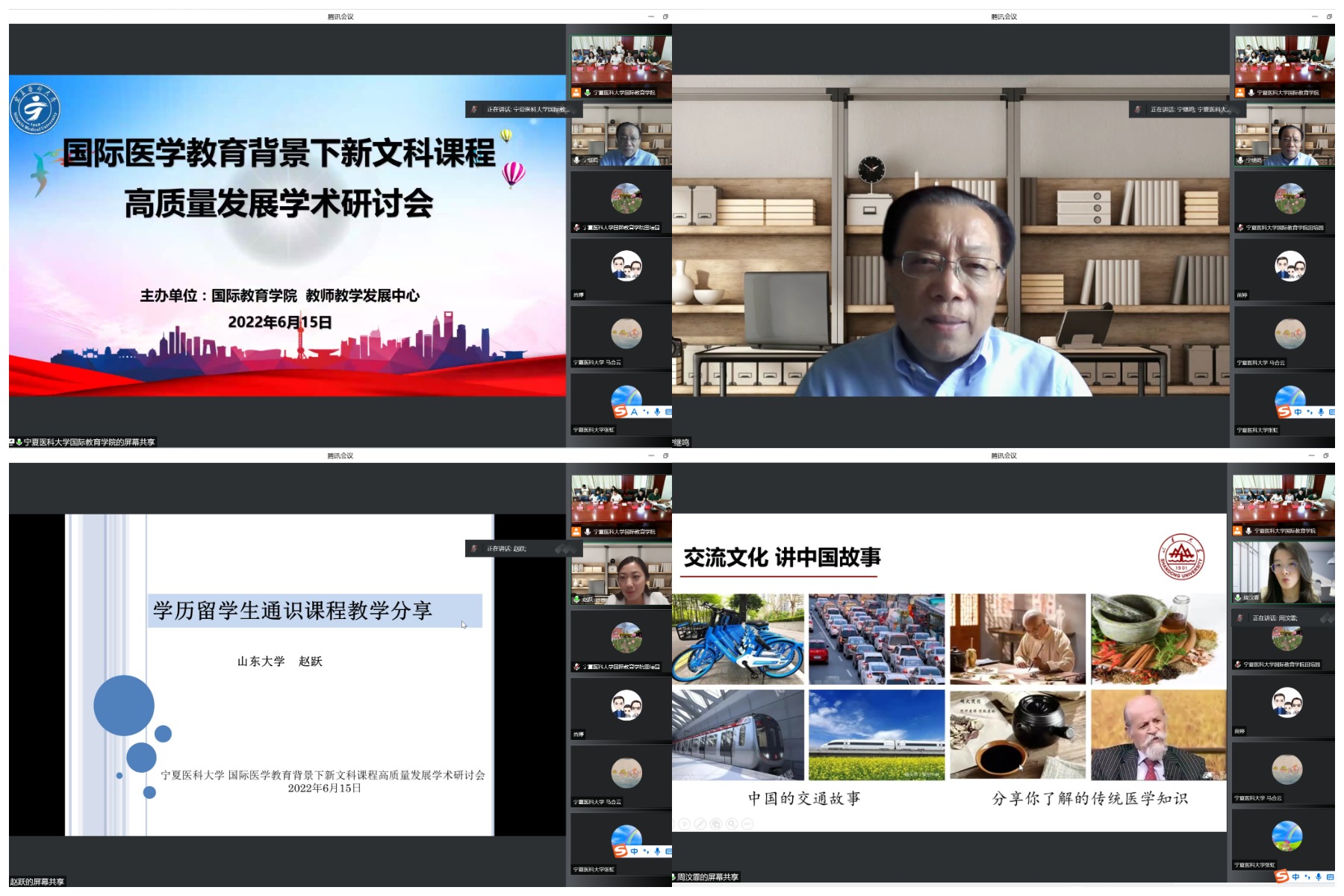 6月15日,十大体育网站派出教授团队,出席宁夏医科大学2022年国际医学教育背景下新文科课程高质量发展学术研讨会并做系列讲座。宁夏医科大学教务处、教师教学发展中心、公共卫生与管理公司、马克思主义公司、外国语教学部、十大体育网站负责人及相关教师参加活动。