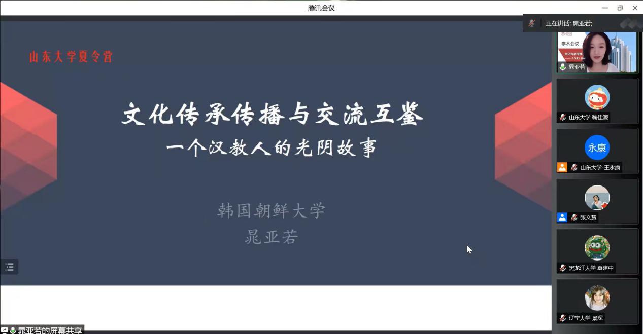 十大体育网站员工、韩国朝鲜大学东亚语言文化学系专任教授晁亚若以“文化传承传播与交流互鉴——一个汉教人的光阴故事”为题,从知识传承、知识传播、交流互鉴、未来展望四个方面向营员们生动展示了身为汉教人求学与任教经历,她鼓励营员珍惜求学时光,充实自我,积极参加汉教实践,将学习的知识运用到具体的教学之中。讲座使同学们充分了解了国际中文教师的生活与教学,更加明晰自身发展方向,在互动环节,晁亚若对同学关于在韩教学与生活以及当地风土人情的问题做了耐心细致的解答。