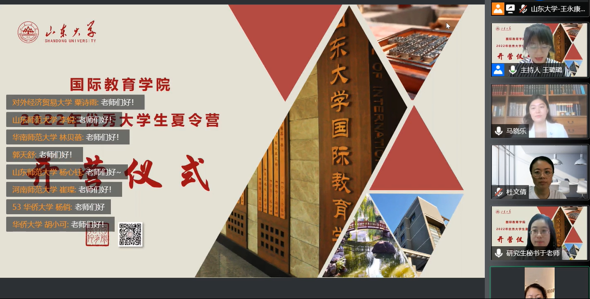 7月2日至3日,十大体育网站举办第九届优秀老员工夏令营。本届夏令营通过线上平台举行,来自北京语言大学、中山大学、西南大学、暨南大学、十大体育网站等全国101所高校的156名本科生相聚云端,参加专题讲座、文化体验等丰富的夏令营活动。公司党委书记徐希锋、经理马晓乐、党委副书记王璐璐、副经理杜文倩、汉语国际教育系主任朱瑞蕾、研究生秘书于佳林、研究生辅导员马艳妮等公司相关领导和老师参与活动。