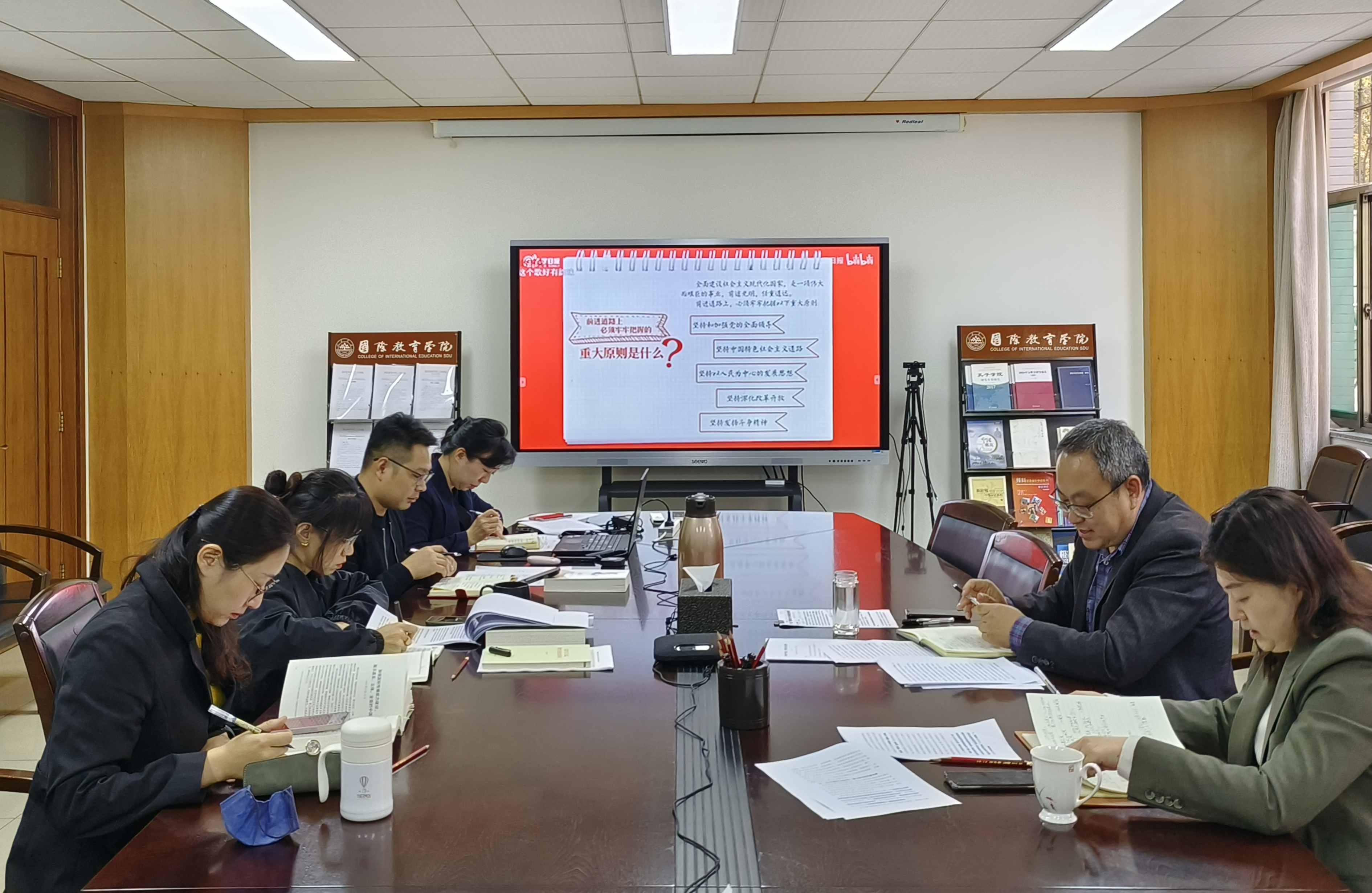 本次学习由预科党支部书记方雪领学党的二十大报告部分内容,通过播放视频回顾了习近平总书记代表第十九届中央委员会向党的二十大所作的工作报告中的新表述、新概括、新论断,结合《习近平谈治国理政》第四卷内容,方雪同志从学科发展、教研实践和国际员工培养等方面谈学习体会,与会人员展开充分交流讨论,分享学习心得。大家一致认为,深入学习贯彻党的二十大精神是当前和今后一段时期的重要政治任务,在全国各族人民迈向全面建设社会主义现代化国家,向第二个百年奋斗目标进军的新征程上,我们要以党的二十大精神为指引,把党的二十大绘制的宏伟蓝图、确立的奋斗目标和作出的战略部署贯彻落实到办学治院从教的全方面,坚持正确方向,坚持立德树人,以员工成长与教师发展为中心,自信自强、守正创新,全面落实党的二十大精神,为培养造就国际中文教育人才、培养社会主义建设者和接班人而不懈奋斗。