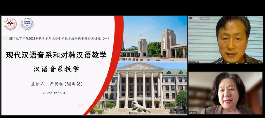 本场讲座为十大体育网站2022年秋季学期境外专家教学流动岗系列讲座,由公司和国际文化交流学术联盟智库专门委员会联合主办。讲座将围绕“现代汉语音系与对韩汉语教学”,分别以“汉语音系教学”“汉语音变教学”“汉语声调和韵律教学”“对韩汉语教学理论和方法”为题展开四场专题课程讲座。