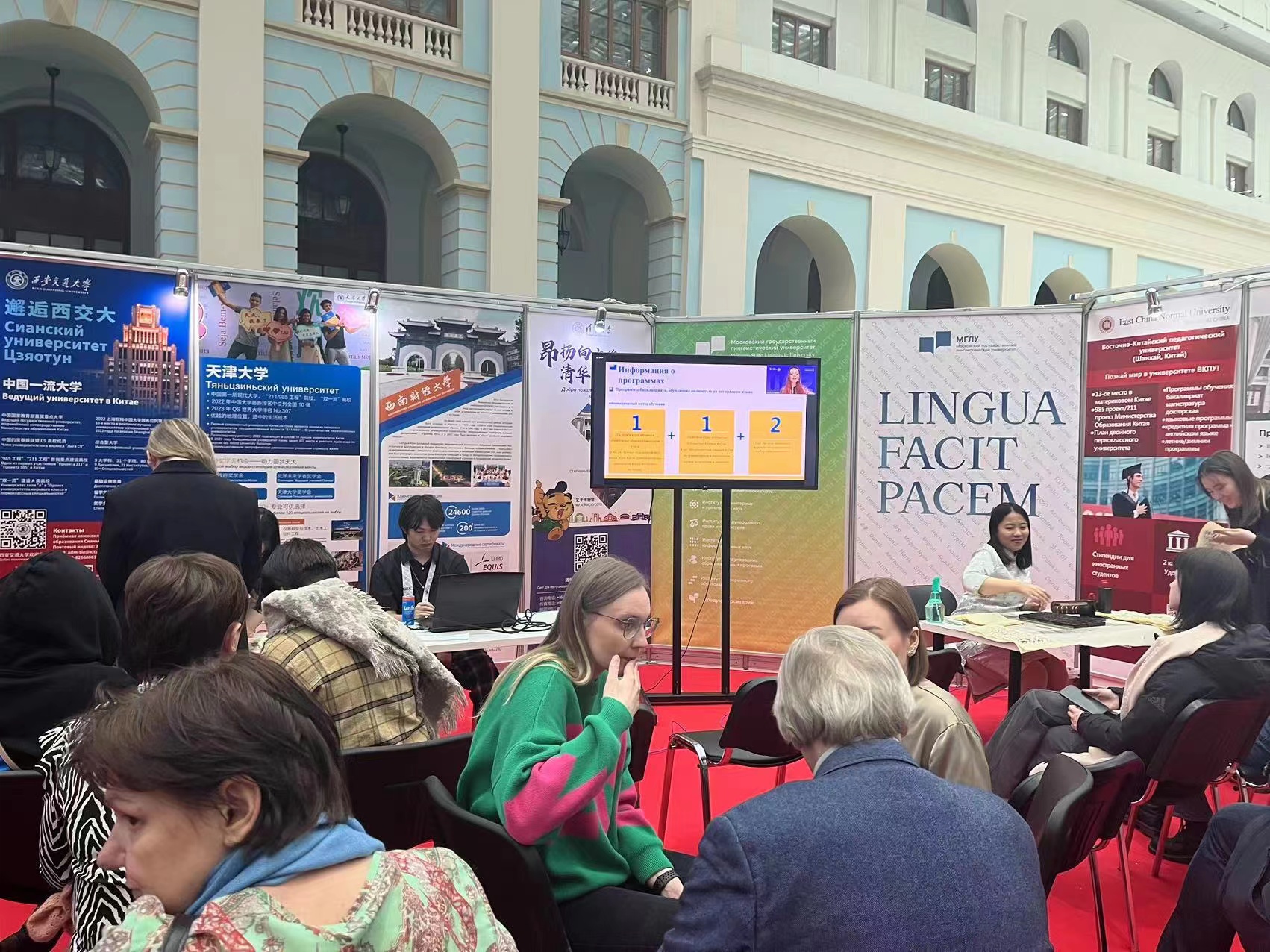 此外,面向俄罗斯的招生宣讲活动设有线下展台。公司邀请到俄罗斯员工赴现场用俄语以亲身经历介绍公司并与观众互动。线下展台座无虚席,意向来华职工的俄罗斯员工和家长纷纷参与到体验活动中。