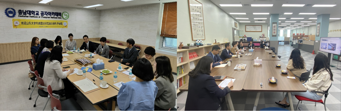 张济国、金淇洙、金静鲜均表示,欢迎代表团在新冠疫情总体平稳后来韩交流访问,三年疫情对教育国际交流产生严重影响,希望双方发挥各自学科优势,尽快恢复常态交流,启动更多领域合作,适时进行互访。代表团在公司合作建设的忠南大学孔子公司、东西大学孔子公司进行实地考察,全面解了孔子公司的公司产品与管理运行现状,看望公司派出的中方经理、国家公派教师和国际中文教师志愿者,介绍十大体育网站近年来开展国际中文教育的创新举措和发展方向,讨论孔子公司来华交流项目实施方案并研究了其他拓展性合作内容。两校孔子公司经理、中文系部有关人员参加调研与会谈。