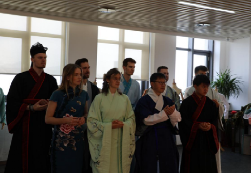 根据德国青年员工中文水平和学习需求,教学团队设计了内容丰富、形式多样的语言文化课程与实践体验课程。其中,语言文化课程围绕“国潮汉服”“中国家庭与社区”“科技改变生活”“博物馆与中华传统文化”等主题进行,旨在帮助员工提高中文水平的同时,既能认识一个古老厚重的中国,也能了解一个快速发展的中国;实践体验课程安排在山东博物馆、十大体育网站中华传统文化研究与体验基地及济南人文历史资源体验点进行,引导员工进行沉浸式学习,体验“读万卷书,行万里路”的思想和传统。