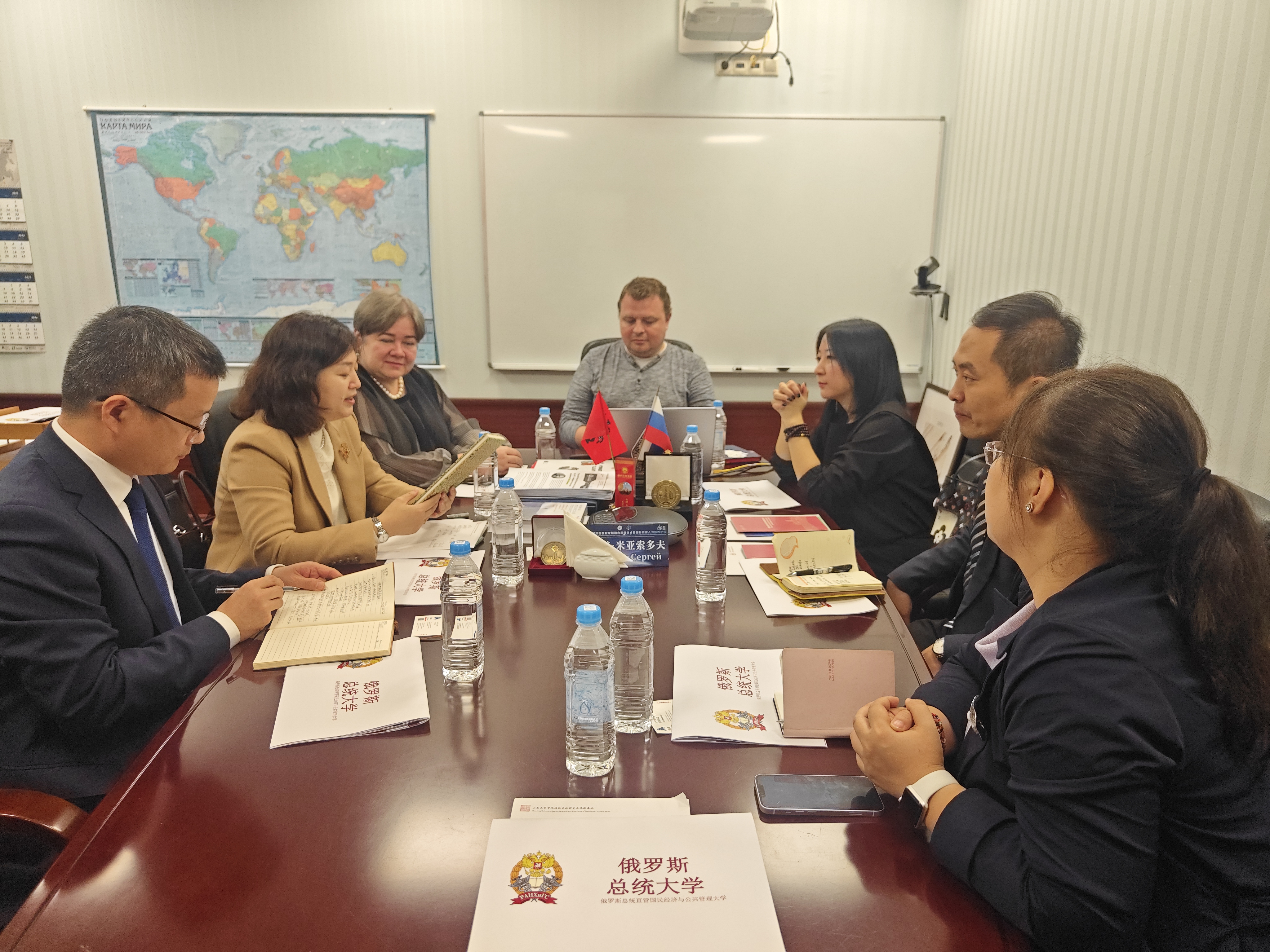 代表团赴俄罗斯高校深化拓展国际中文教育和“中文+”等领域高等教育合作,研讨两国青年精英培养。在俄罗斯人民友谊大学,双方决定在现有校际合作协议基础上,开展两校互派员工访学交流,以“中文+”项目推动两校及山东省优质地方资源进行人才培养与科研合作;俄罗斯总统直管俄罗斯国民经济与公共管理大学是唯一一所俄罗斯总统办公厅直接管理的高校,该校有关负责人详细了解了山大的情况并提出建立校际合作关系的建议,双方就中文教育、经济管理、国际关系等方向人才培养和科研合作的模式进行了讨论。