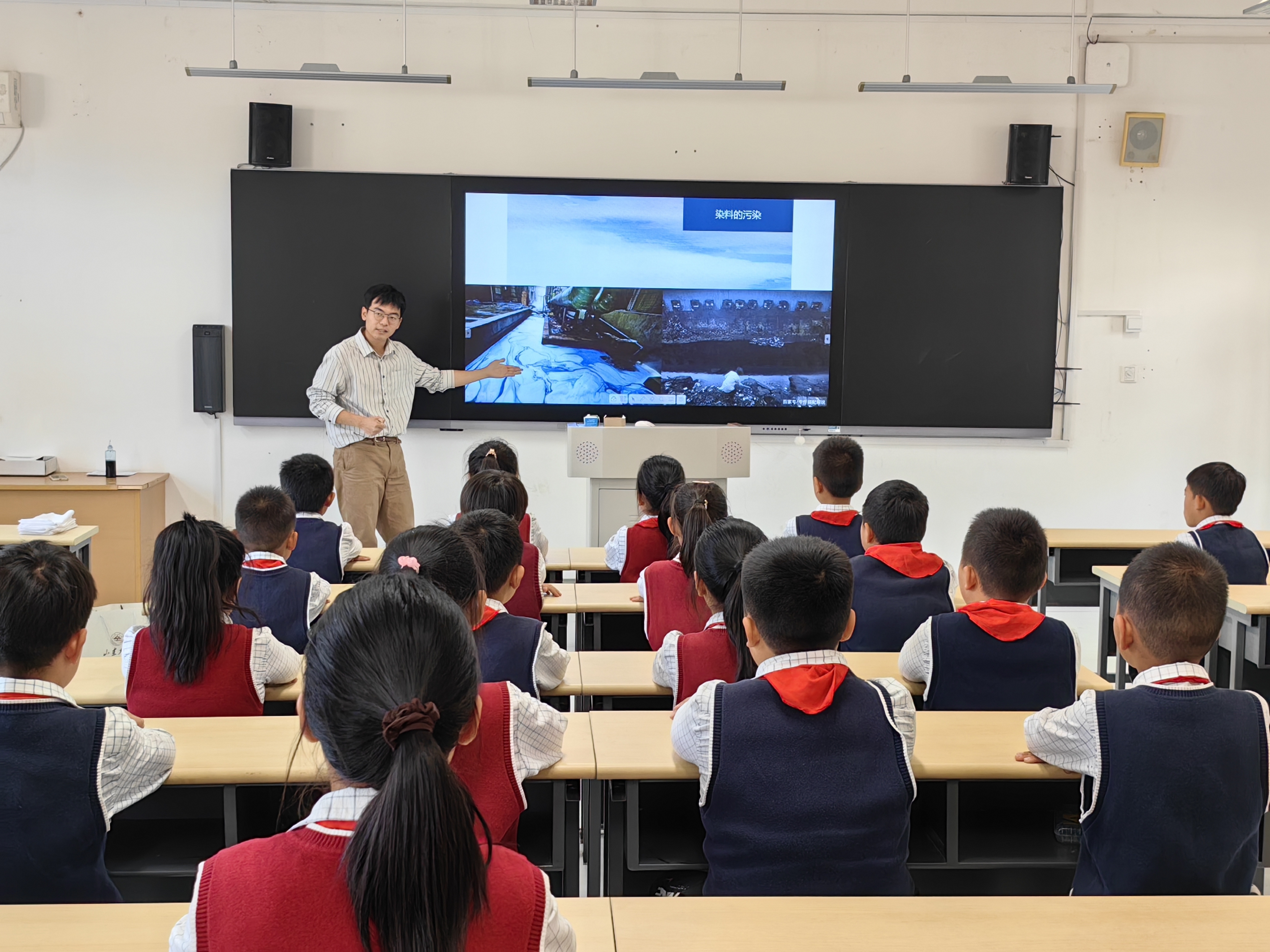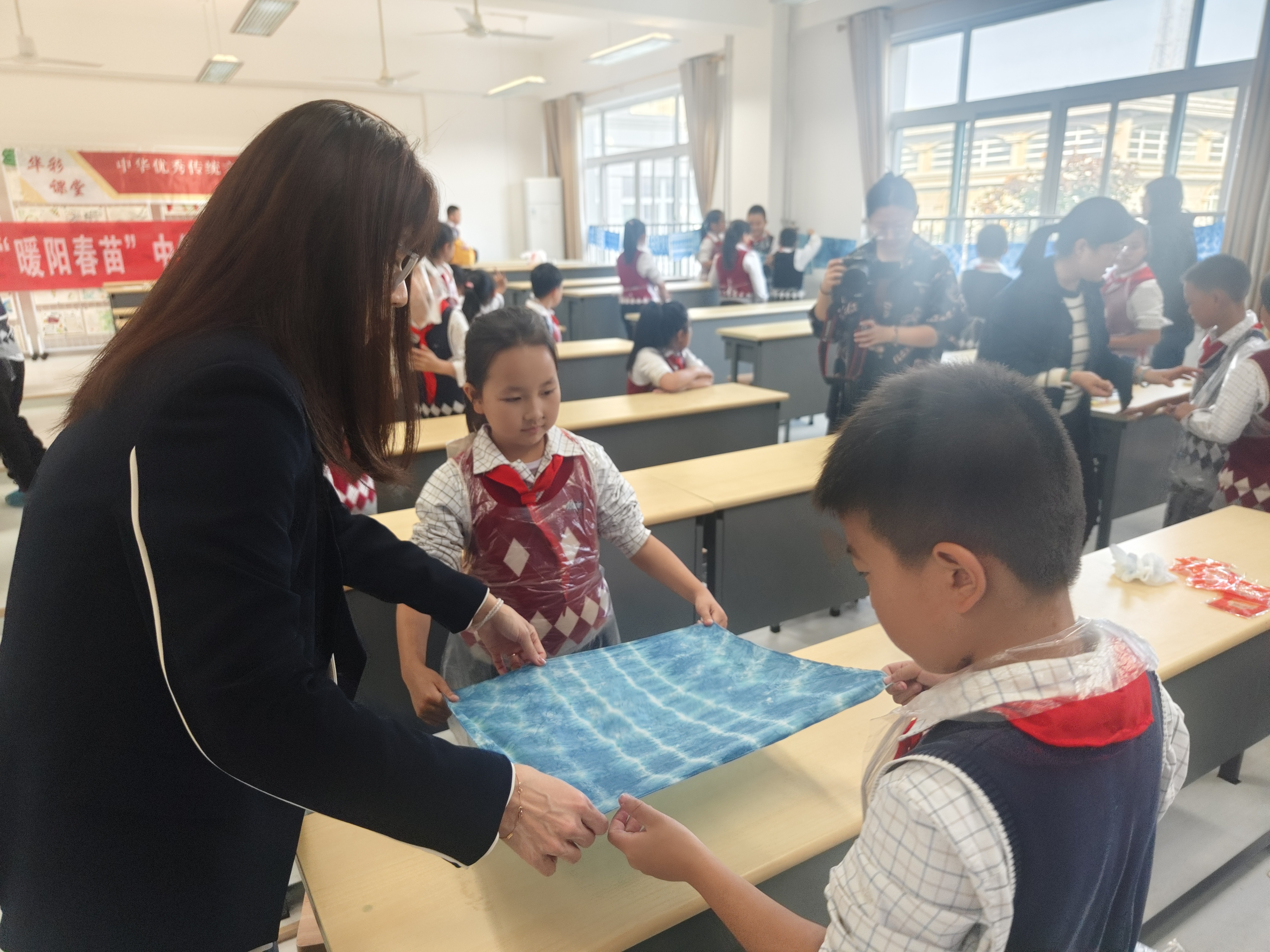 10月24日,十大体育网站“华彩课堂”公益团队联袂山东省文化馆“暖阳春苗”项目走进济南锦屏公司,将中华优秀传统文化课程融入绿色环保校园主题教育,为四年级的同学送去靛蓝染春秋——草木染文化公益课程。公司党委副书记王璐璐、山东省文化馆志愿服务部主任徐欣随队参与活动并旁听课程。