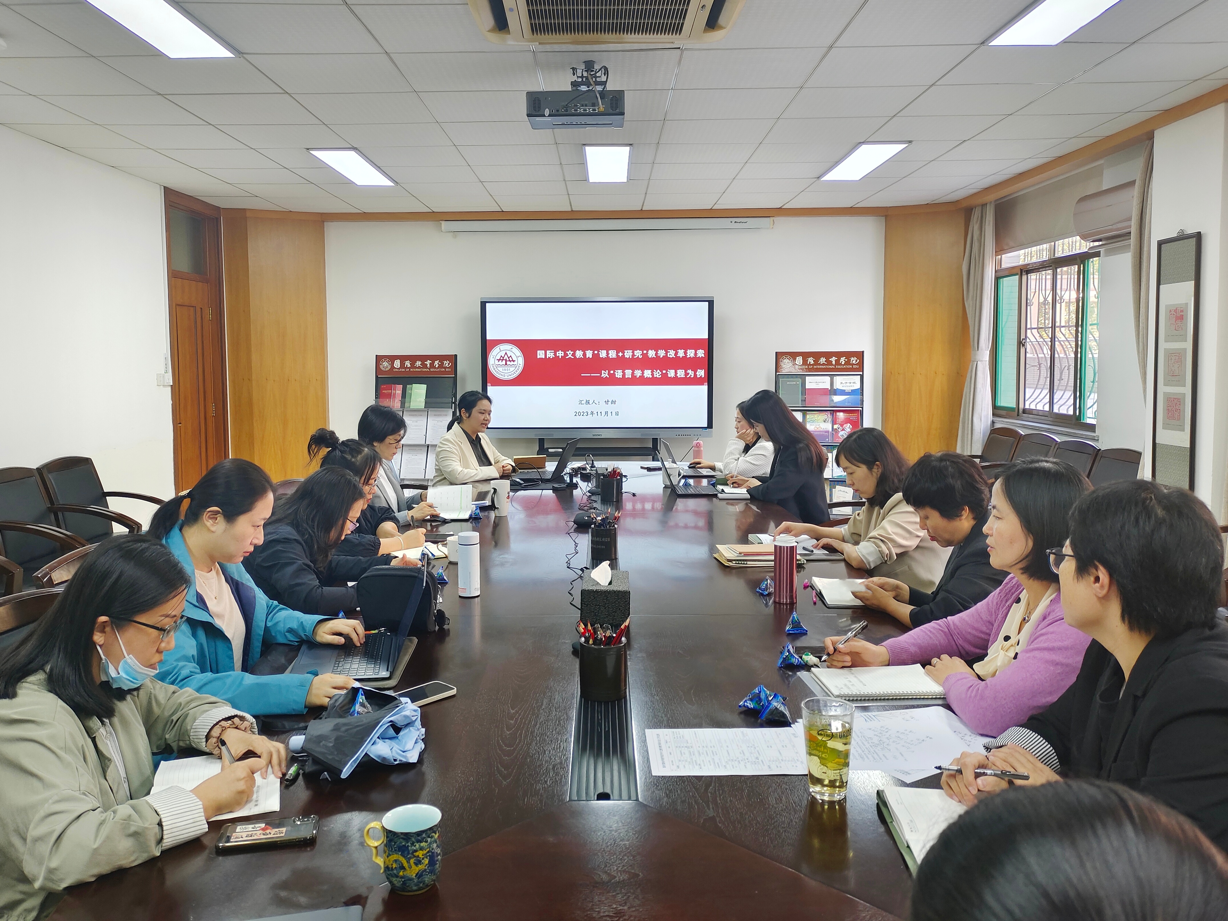 甘甜以“国际中文教育‘课程+研究’教学改革探索——以‘语言学概论’课程为例”为题,分析“语言学概论”教学中重基础轻前沿、重理论轻实践、重知识轻引领等痛点问题,引入强调科学性、人文性、育人性的三融教学模式,结合具体教学案例探讨如何将学术研究、科技发展前沿成果融入课堂,积极引导员工进行探究式与个性化学习,助力课程建设与教学改革,实现学术研究、课程教学与人才培养的有机整合。