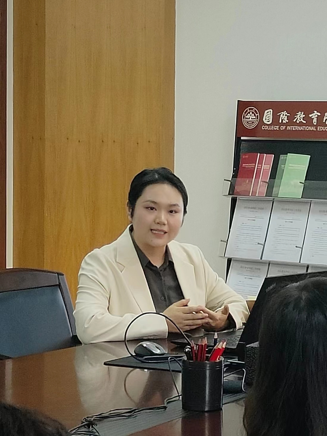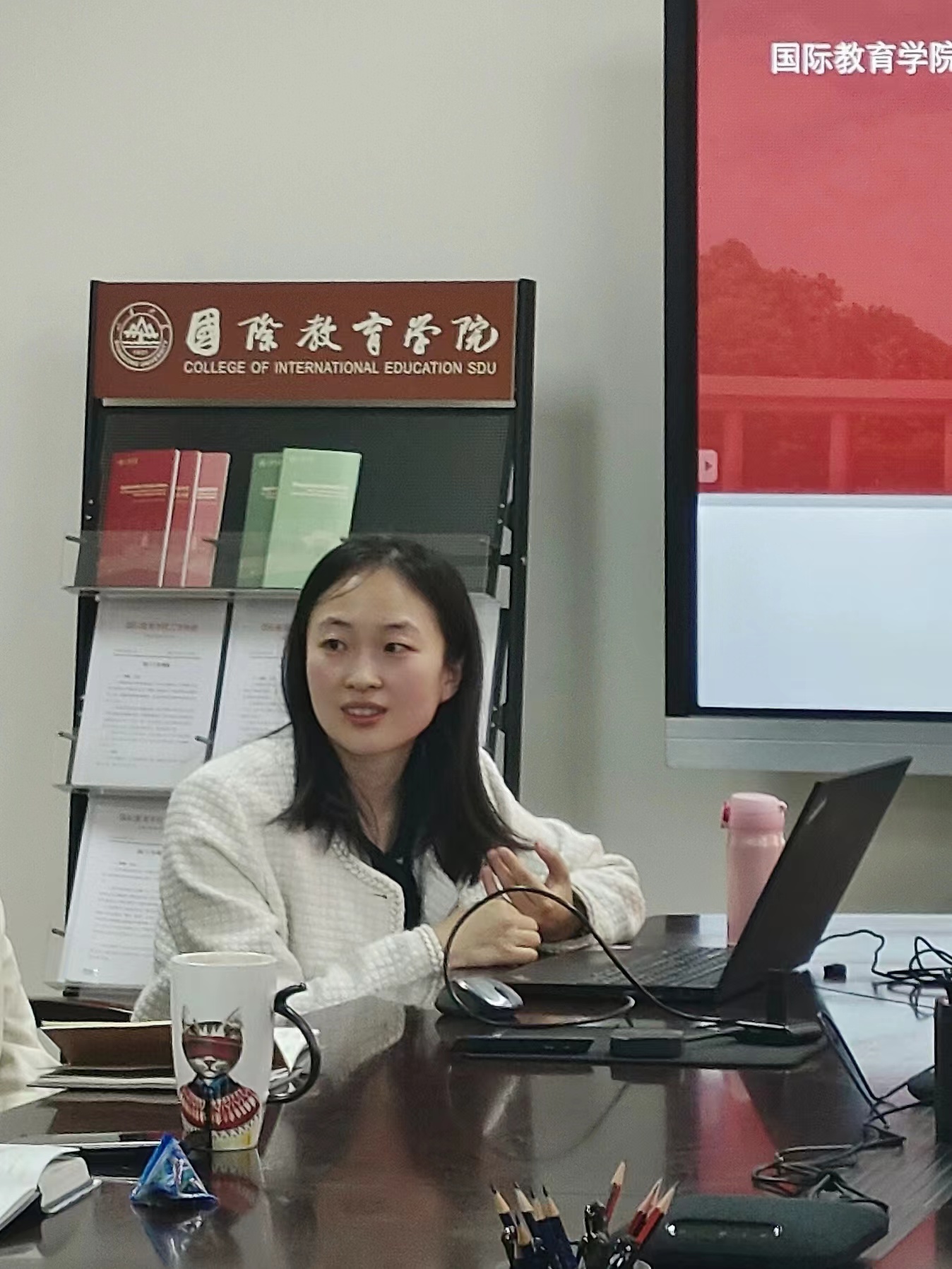 刘威童进行了题为“国际中文教育‘课程+思政’教学改革探索——以‘教育心理学’课程为例”的分享。她分别针对课程思政的涵义定位与目标内容进行阐发,带领参会教师解读相关政策,并以“教育心理学”课程为例,介绍学界专家提出的课程思政教育框架和实践路径,以“动机理论”为案例,阐述如何将课程思政融入课堂教学,实现价值塑造与知识传授、能力培养的有机整合,突出了“润物无声”的课程思政建设要求。