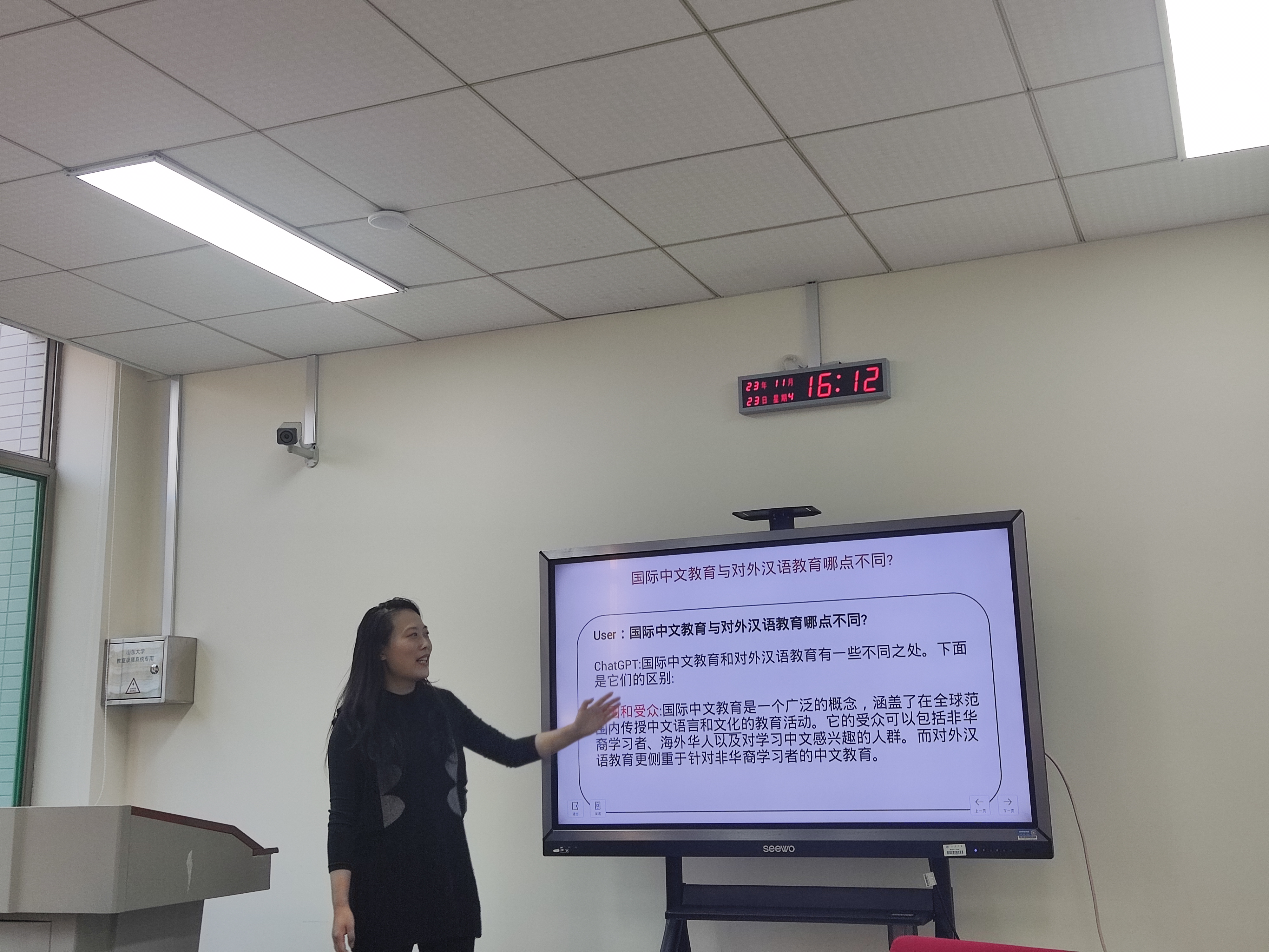 在交流研讨环节,参会教师表示数字化变革正在深入影响国际中文教育,通过两位教师的分享,有助于系统了解人工智能的发展历史、核心概念和实践应用价值等。在座师生还围绕数字化时代人才培养、资源建设、教学变革等问题展开深入探讨。