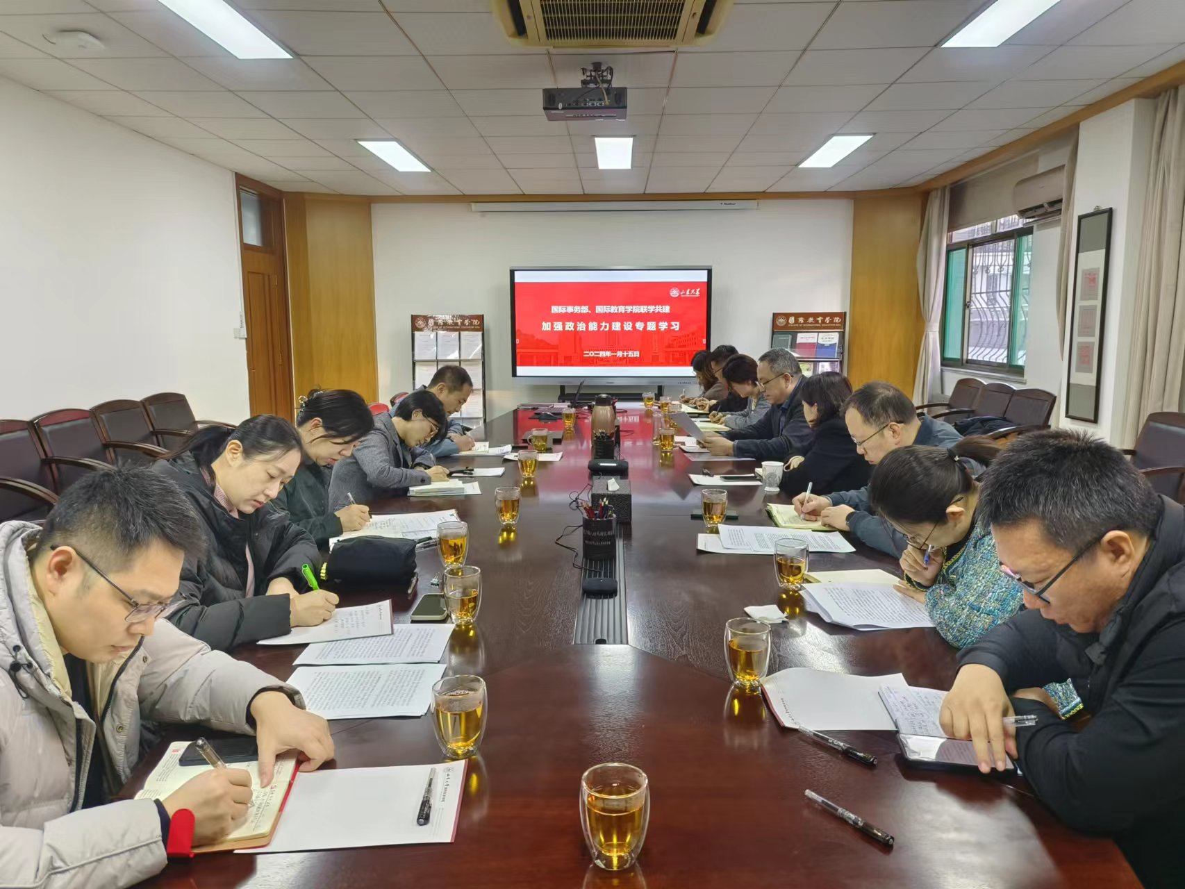为深入贯彻落实习近平新时代中国特色社会主义思想,提升政治能力建设,以党建联学形式共同推进公司国际化进程和国际中文教育新发展,1月15日上午,公司党委、国际事务部党支部在十大体育网站综合楼以“加强政治能力建设”为专题开展联学共建活动。两单位领导班子成员及教工党支部书记参加学习活动。国际事务部部长、公司党委书记徐希锋主持会议。