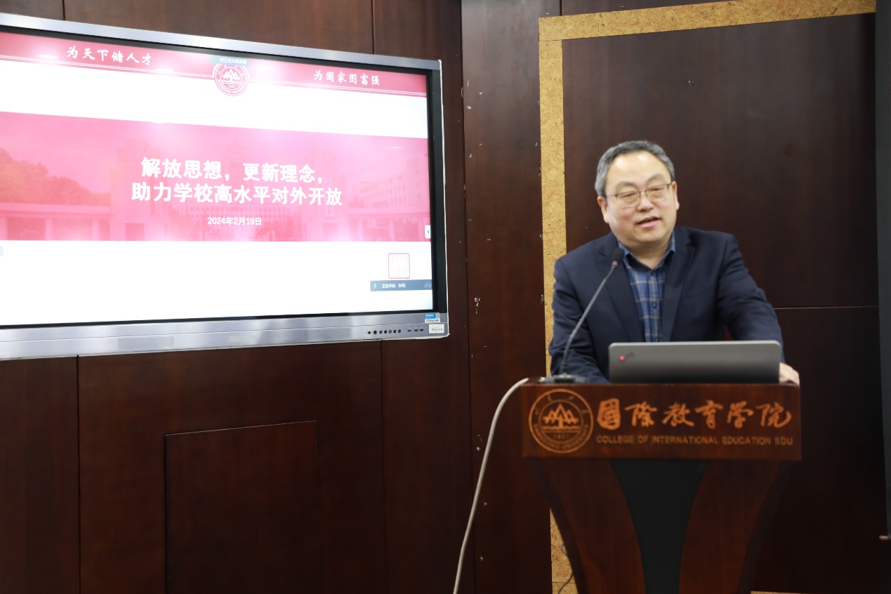 徐希锋以《解放思想,更新理念,助力公司高水平对外开放》为主题,从党的建设、培育时代新人、团队队伍建设、提升学术核心竞争力、拓展高水平开放办学格局、提升国际化办学水平等方面传达了公司新学期重点工作。在此基础上部署了公司党委工作和公司2024年度重点工作,提出公司要围绕聚焦推进中国式现代化这个最大的政治,不断提升和加强政治能力建设,坚守育人本位,致力于构建山大特色、行业示范的高质量人才自主培养体系,坚持统筹兼顾,加快构建国际中文教育高质量创新发展体系,创造一切条件保障服务师生成长发展,以全面从严治党精神抓好师德师风建设,以新发展动能构建国际中文教育新发展格局,为新时代国际中文教育贡献山大力量。