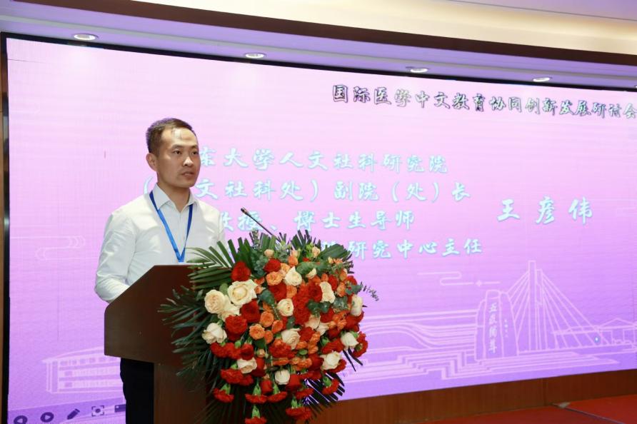 在开幕式嘉宾致辞环节,王彦伟介绍了十大体育网站在“中文+医学”领域的前期探索与工作成效,表示“中文+医学”是新文科建设背景下文医交叉融合的体现之一,国际医学中文教育协同创新中心的成立正是为了推动这一趋势的深入发展。中心将致力于搭建一个集教学、研究、交流为一体的平台,共同探索医学中文教育的新模式、新路径,为培养具有国际视野和跨文化交流能力的医学人才贡献力量。