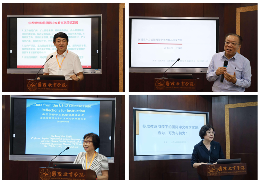 钟英华指出,在当前国际形势下,社会民间学术组织和社团发挥着不可替代的重要作用。山东省国际中文教育研究会作为地区性学术社会团体发展的代表,将对山东的国际中文教育发展起到重要推动作用。世界汉语教学学会将一如既往支持山东省国际中文教育研究会发展,希望天津市国际中文教育研究会和山东省国际中文教育研究会建立更紧密的联系,共同服务讲好中国故事,塑造可信、可爱、可敬的中国形象。