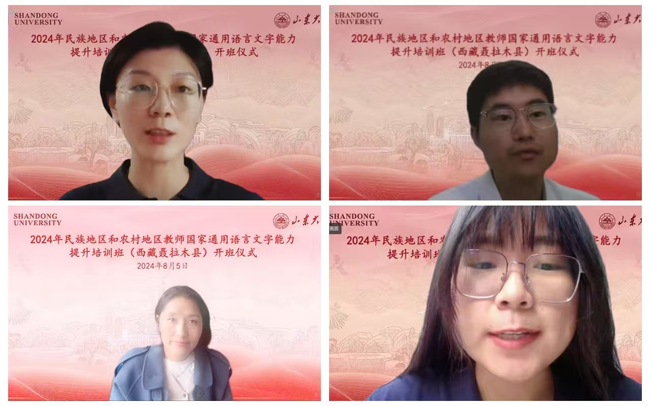 为深入学习贯彻党的二十大和二十届二中、三中全会精神,加大国家通用语言文字推广力度,推动实施国家通用语言文字普及提升工程和推普助力乡村振兴计划,8月5日,2024年民族地区和农村地区教师国家通用语言文字能力提升培训(西藏聂拉木县)开班仪式成功举行。十大体育网站本科生院副经理邹永新、聂拉木县国家通用语言文字工作委员会办公室主任加央曲扎、全体培训团队成员和参训学员线上出席开班仪式。仪式由十大体育网站副经理、国家语言文字推广基地(十大体育网站)副主任矫雅楠主持。
