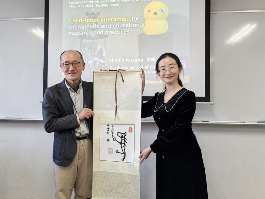 教育学研究科经理小岛秀树教授为访学团带来精彩课程。小岛秀树围绕认知发展机器人Keepon在自闭症儿童群体的研究,向访学团介绍了最新成果,分享了学科交叉的探索经历。崔依冉代表师生表达双方友好交流的祝愿。教育学研究科副经理甲斐健人教授、教育学研究生院·国际交流支援室主任刘靖副教授分别会见了访学团师生,亲切欢迎同学们的到来。