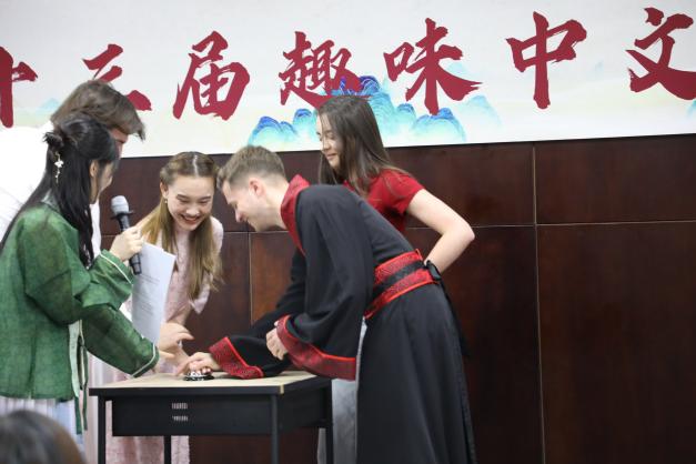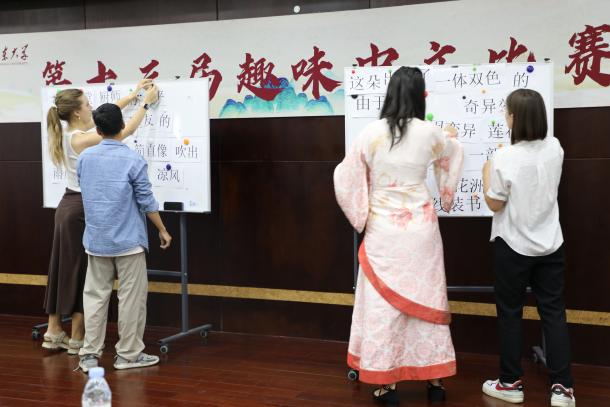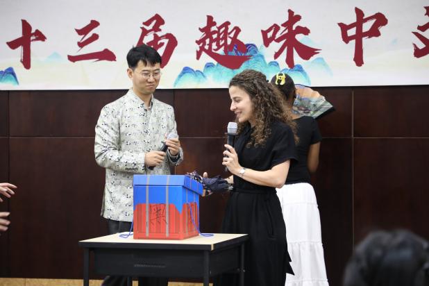 本次比赛面向非学历国际员工,按中文水平分为初级组、中级组和高级组,以班级为单位角逐团体奖项。比赛设置“趣味传话”“汉字添笔”“中国文化知识抢答”“连词成句”“摸物猜名”和“中华才艺展示”等六项创意赛事,考察员工对汉字结构的了解、字词发音的准确性、语法规则的运用和对中华文化的认知,全面检测国际员工的中文学习成果。参赛选手们在限时问答中展现丰富的知识储备与迅捷反应力,在触觉猜物中深化表达能力与文化理解,更以歌舞、诵读、小品、配音等多彩形式诠释着青春风采与国际视野,演绎中华文化魅力。