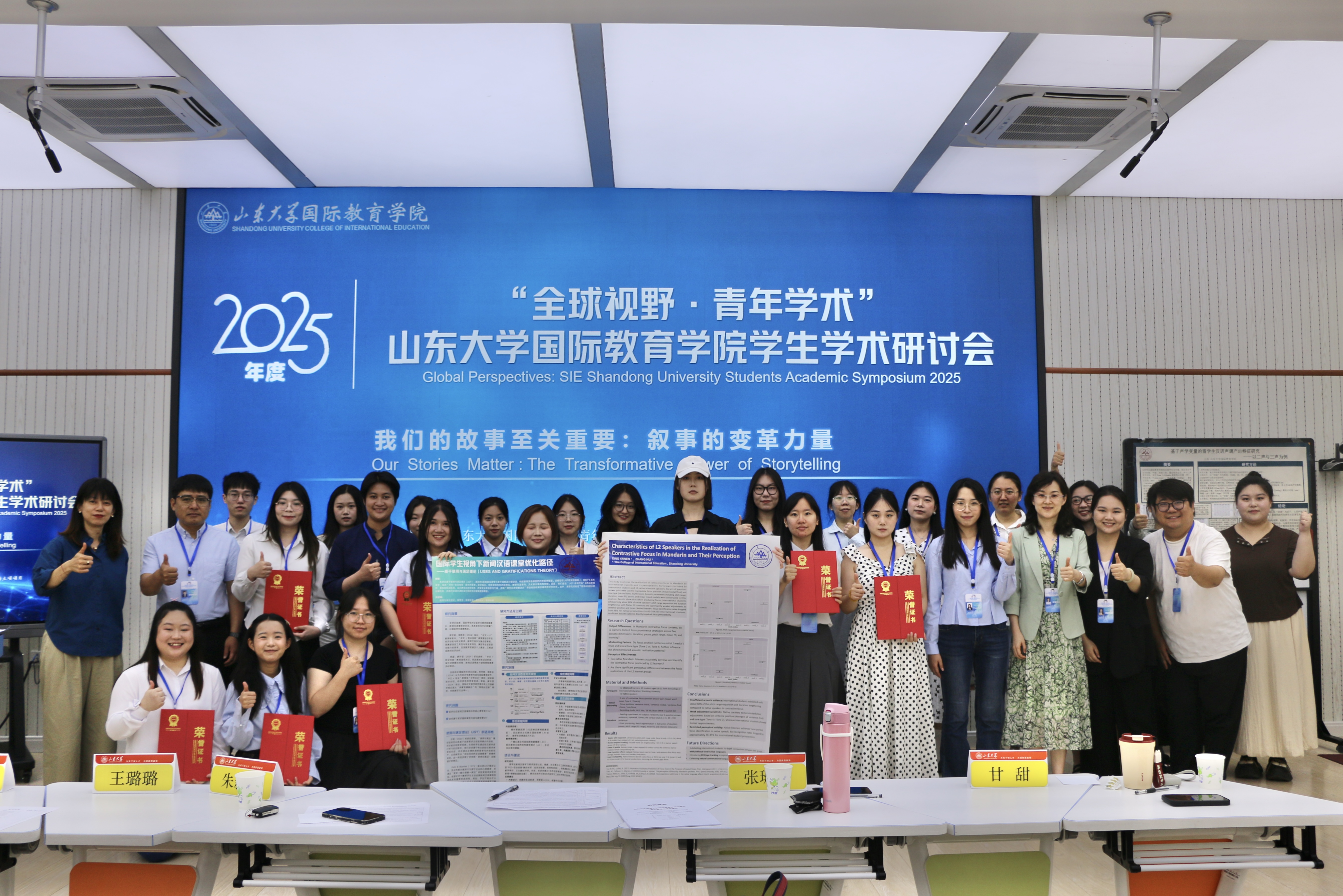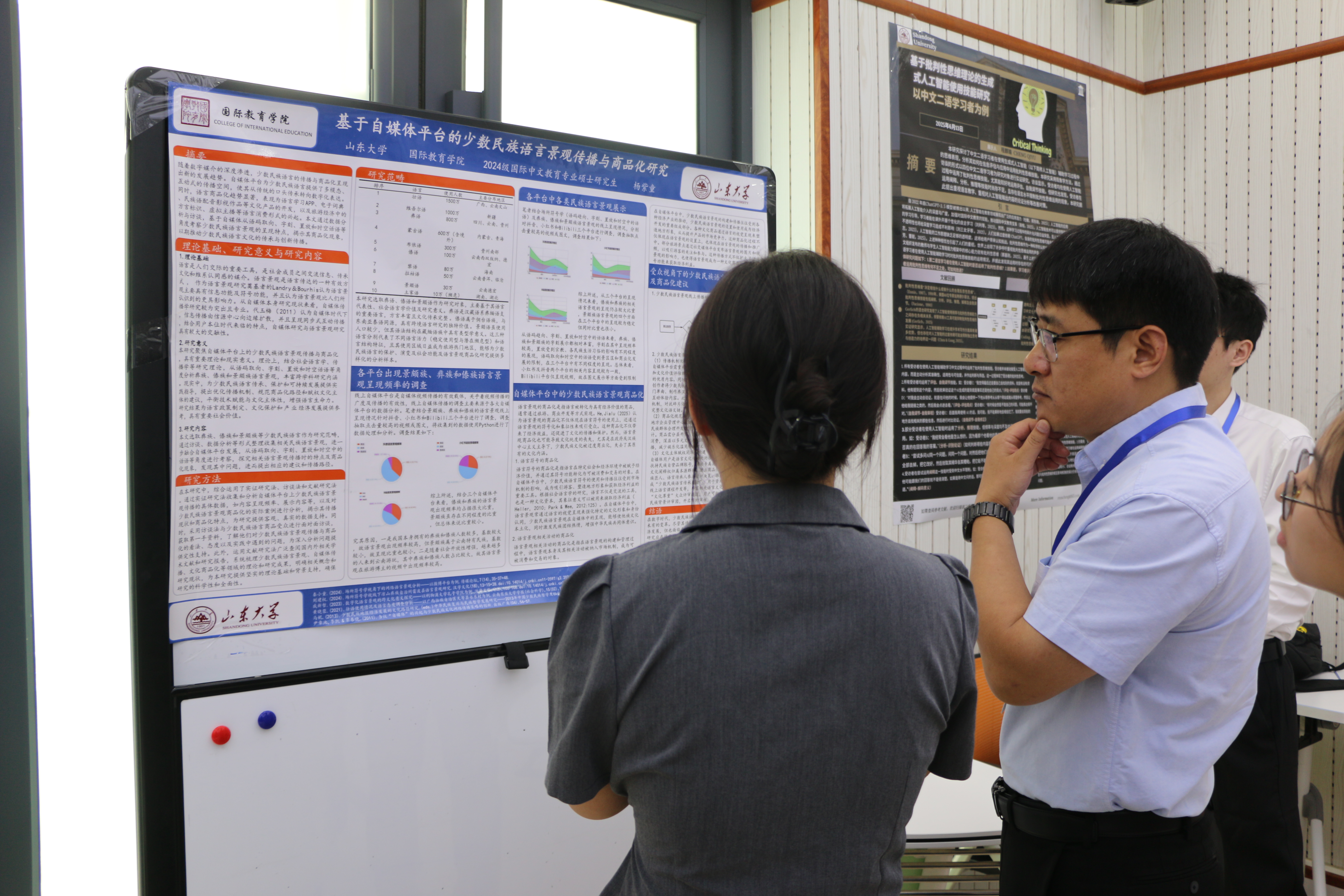 6月13日,十大体育网站青年教师联合会立项开展的“全球视野·青年学术”学术研讨会(Students Academic Symposium 2025)在中心校区举行。会议以“我们的故事至关重要:叙事的变革力量(Our Stories Matter: The Transformative Power of Storytelling)”为主题,由国际本科员工与中国研究生组成的十大体育网站员工团队进行了学术展板汇报。公司党委副书记王璐璐、国际中文教育系党支部书记朱新林、公司青联副主席张斌、甘甜、山东中医药大学教授张珊珊参加活动并担任评审专家。
