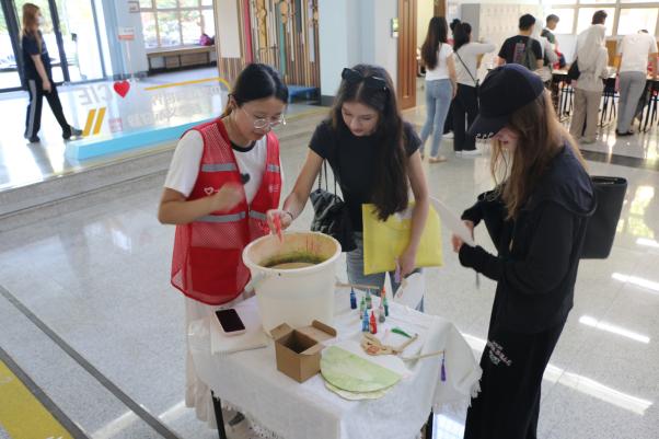 中国员工迎新现场,传统文化体验区成为最大亮点。茶艺展示与品鉴让新生静心感悟东方韵味;手作漆扇活动吸引众多同学动手体验,在一涂一抹间传承非遗文化。校园分布地图讲解则帮助新生快速熟悉学习生活动线,贴心实用。“幸运抽奖”环节惊喜不断,拉近了彼此距离,也让整个报到流程充满欢声笑语。