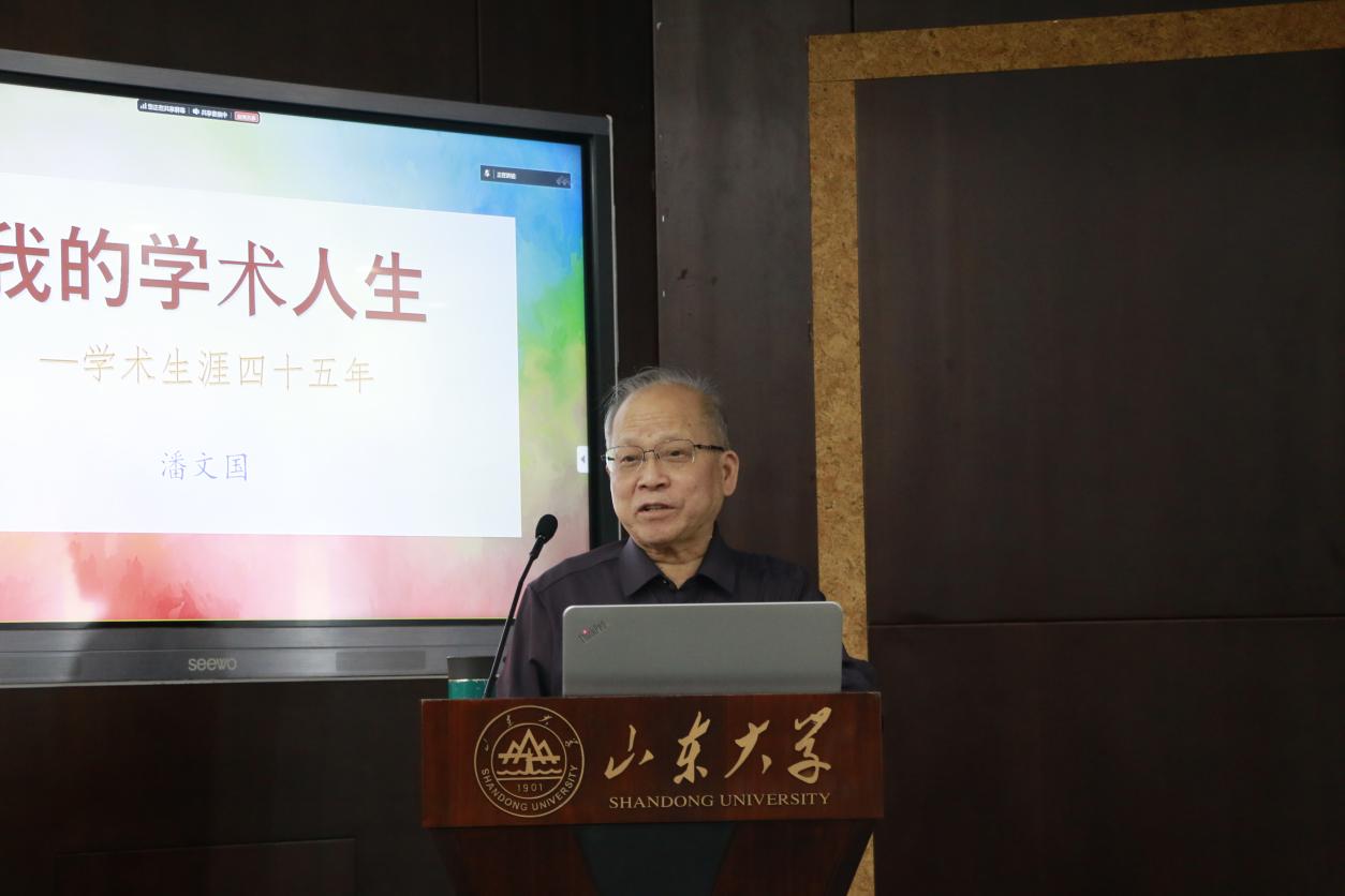 讲座中,潘文国教授以朴实生动的语言回顾了自己四十五年的学术历程,将个人研究概括为十二个领域,并结合《韵图考》《汉语的构词法研究》《赫兹列散文精选》等代表性成果,系统梳理了学术发展的脉络与思想演进。潘教授回忆道,自己出身于复旦大学外文系,研究生阶段从古代汉语音韵学入门,正式踏上语言学研究之路。此后,他在创立对外汉语专业、开设汉英对比课程的过程中,逐步拓展至现代汉语构词法与汉英对比研究,形成了多维交融的学术体系。