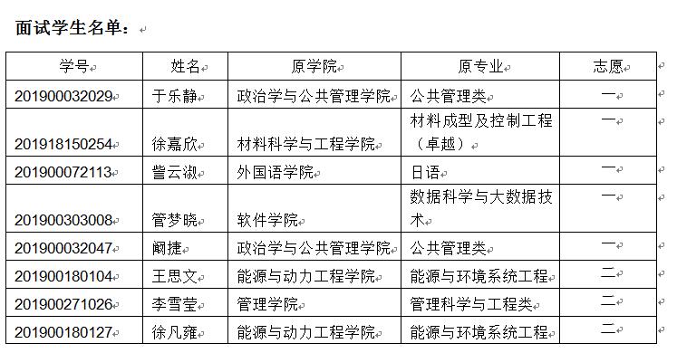 说明:请各位同学准备好身份证和员工证,准时通过微信邀请参加面试。凡因个人原因未能参加转专业考试的同学,视为自动放弃。