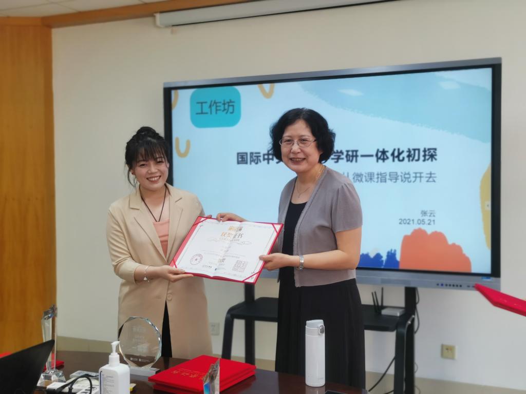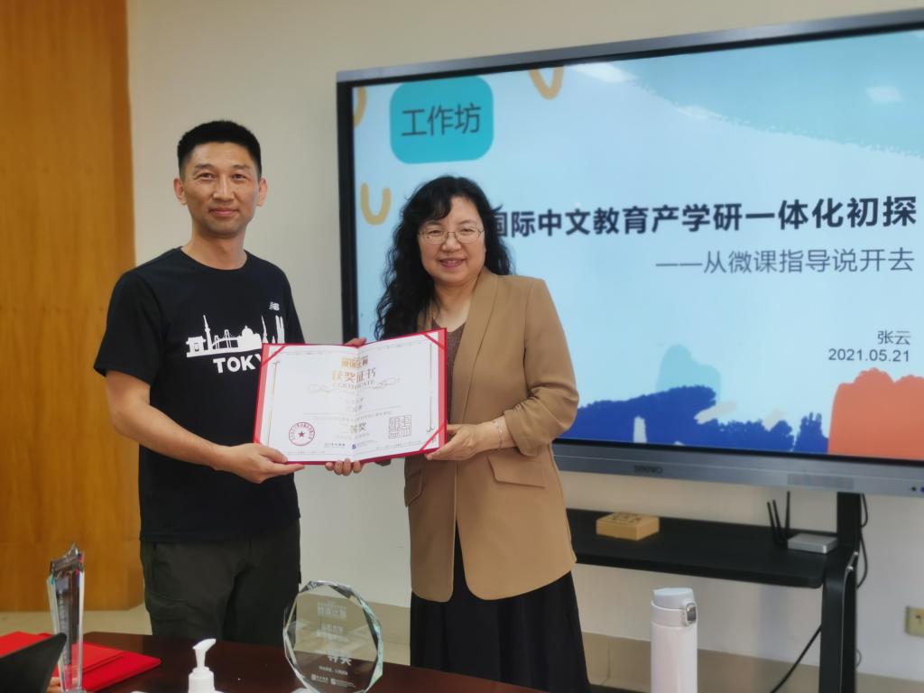 为进一步发挥国际中文教育基层教学与学术组织的特点,推动更多教学实践向教学研究转化,公司决定将“教学工作坊”品牌项目调整为“教学学术工作坊”。本次工作坊期间,公司还为在两次微课比赛指导活动中获得组委会奖励的教师颁发获奖证书。获奖团队代表和获奖教师也就指导员工参赛的过程分享了有关的经验体会。