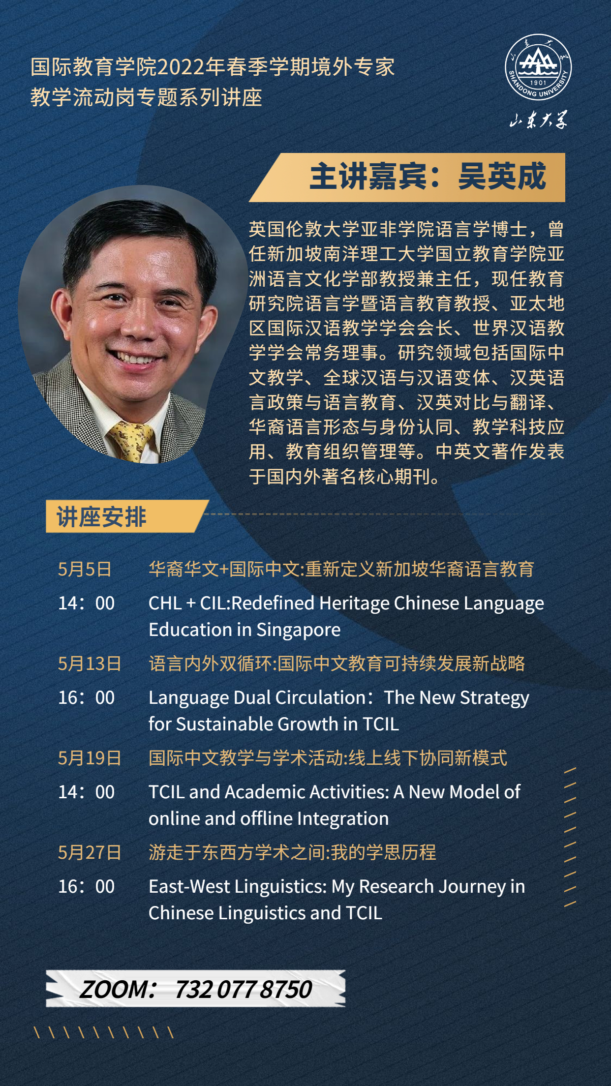4. 5月27日16:00 游走于东西方学术之间:我的学思历程(East-West Linguistics: My Research Journey in Chinese Linguistics and TCIL)