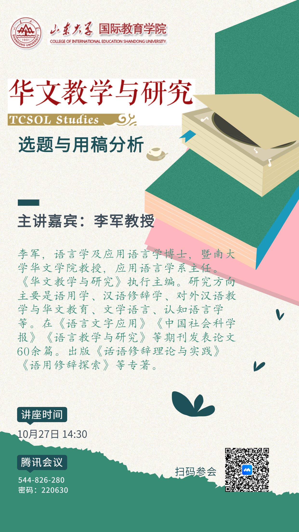 李军,暨南大学华文公司教授,《华文教学与研究》执行主编