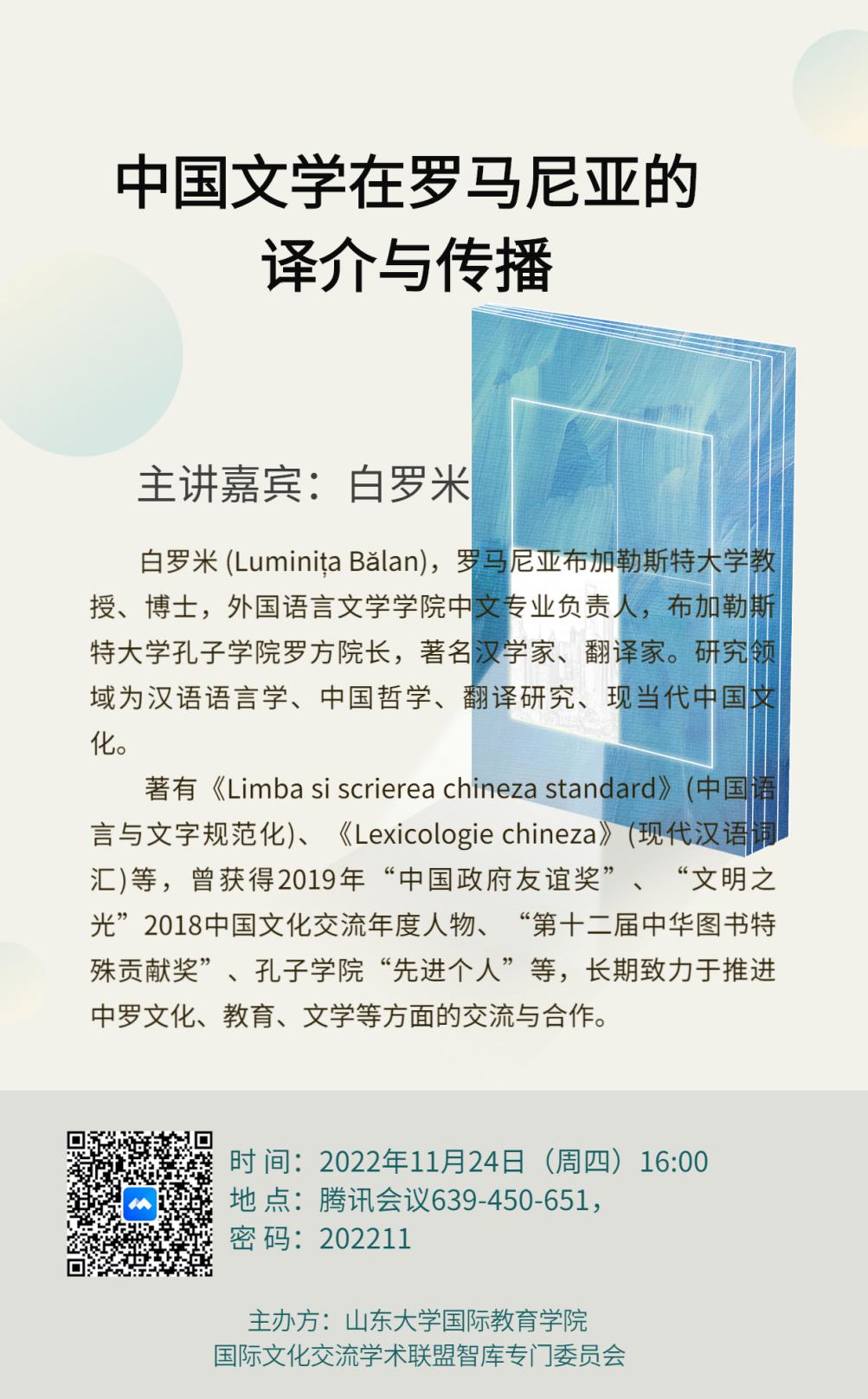 白罗米 (Luminița Bălan),罗马尼亚布加勒斯特大学教授、博士,外国语言文学公司中文专业负责人,布加勒斯特大学孔子公司罗方经理,著名汉学家、翻译家。