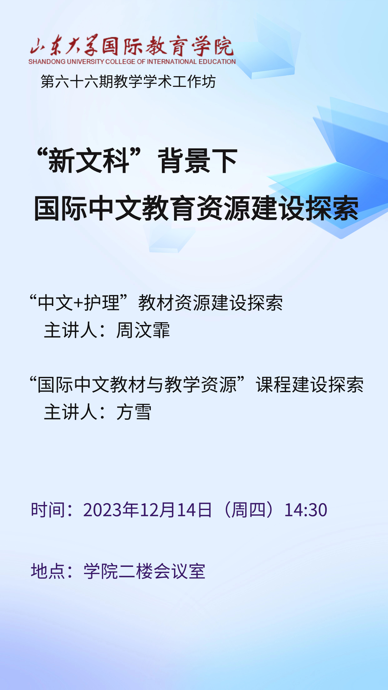 时间:2023年12月14日(周四)14:30