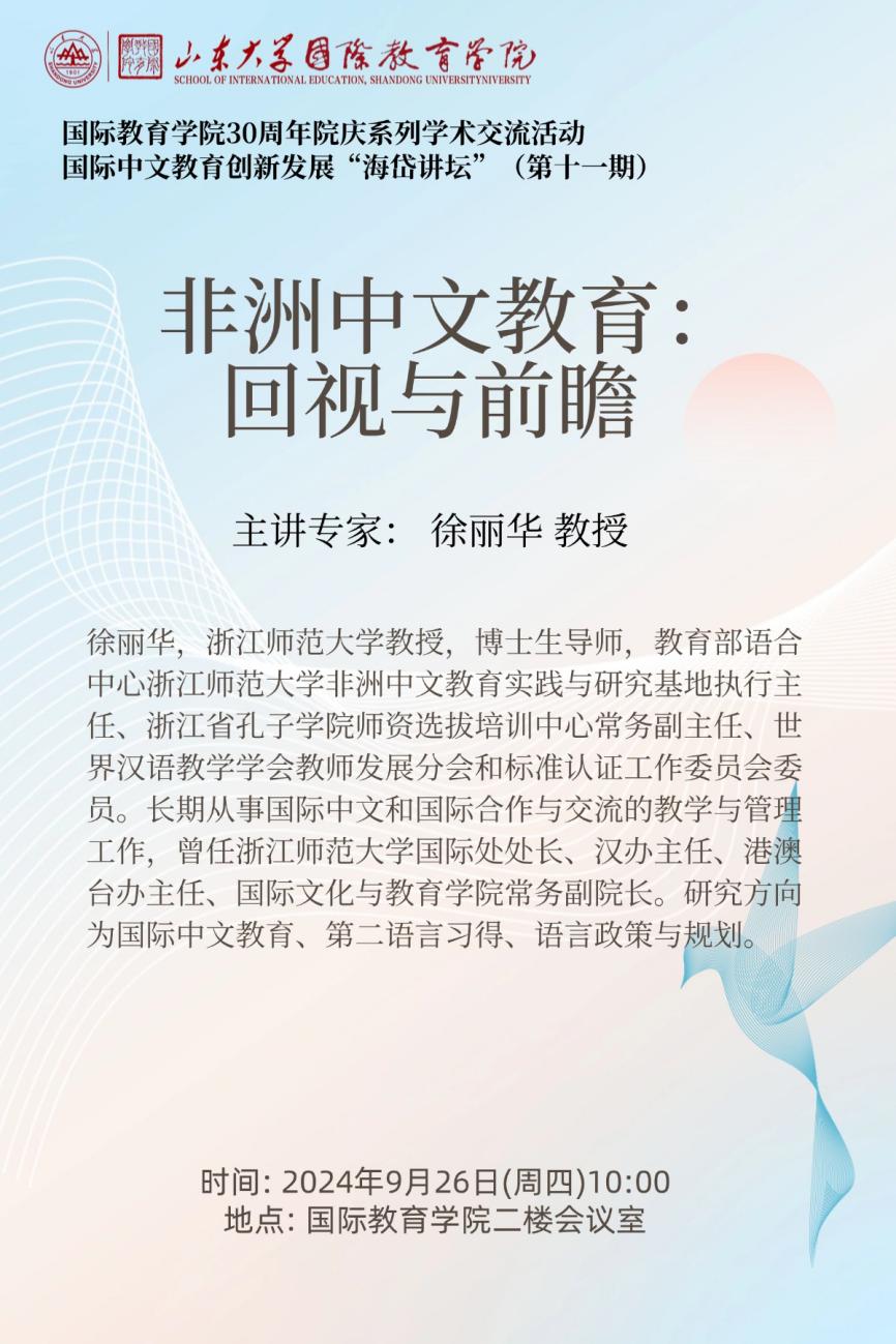 徐丽华,浙江师范大学教授,博士生导师,教育部语合中心浙江师范大学非洲中文教育实践与研究基地执行主任、浙江省孔子公司团队选拔培训中心常务副主任、世界汉语教学学会教师发展分会和标准认证工作委员会委员。长期从事国际中文和国际合作与交流的教学与管理工作,曾任浙江师范大学国际处处长、汉办主任、港澳台办主任、国际文化与教育公司常务副经理。研究方向为国际中文教育、第二语言习得、语言政策与规划。主持国家社科基金项目、教育部中外语言交流合作中心(原孔子公司总部/国家汉办)等多个项目。主编《一带一路语言政策与语言教育译丛》《非洲中文教育研究系书》等。主持非洲五国中文教学大纲研制工作,对非洲地区中文教育、孔子公司发展等长期跟踪研究。主持“6C‘容·和’涉非汉语推广人才培养探索与实践”获“中国学位与研究生教育学会研究生教育成果二等奖”。