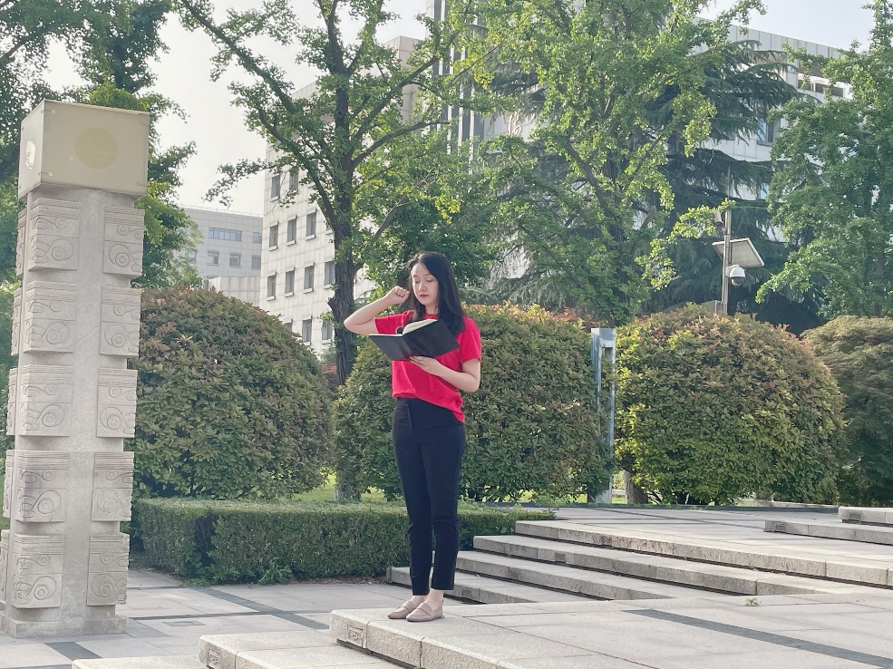 2020级研究生刘霜霜同学做题为“红色的五月 奋斗的青春”的国旗下演讲。她提到,国家的希望寄托在我们当代青年身上,我们的青春应该以爱国为底色,应有星辰大海之理想,有重任在肩之担当,为中华民族伟大复兴而奋斗。