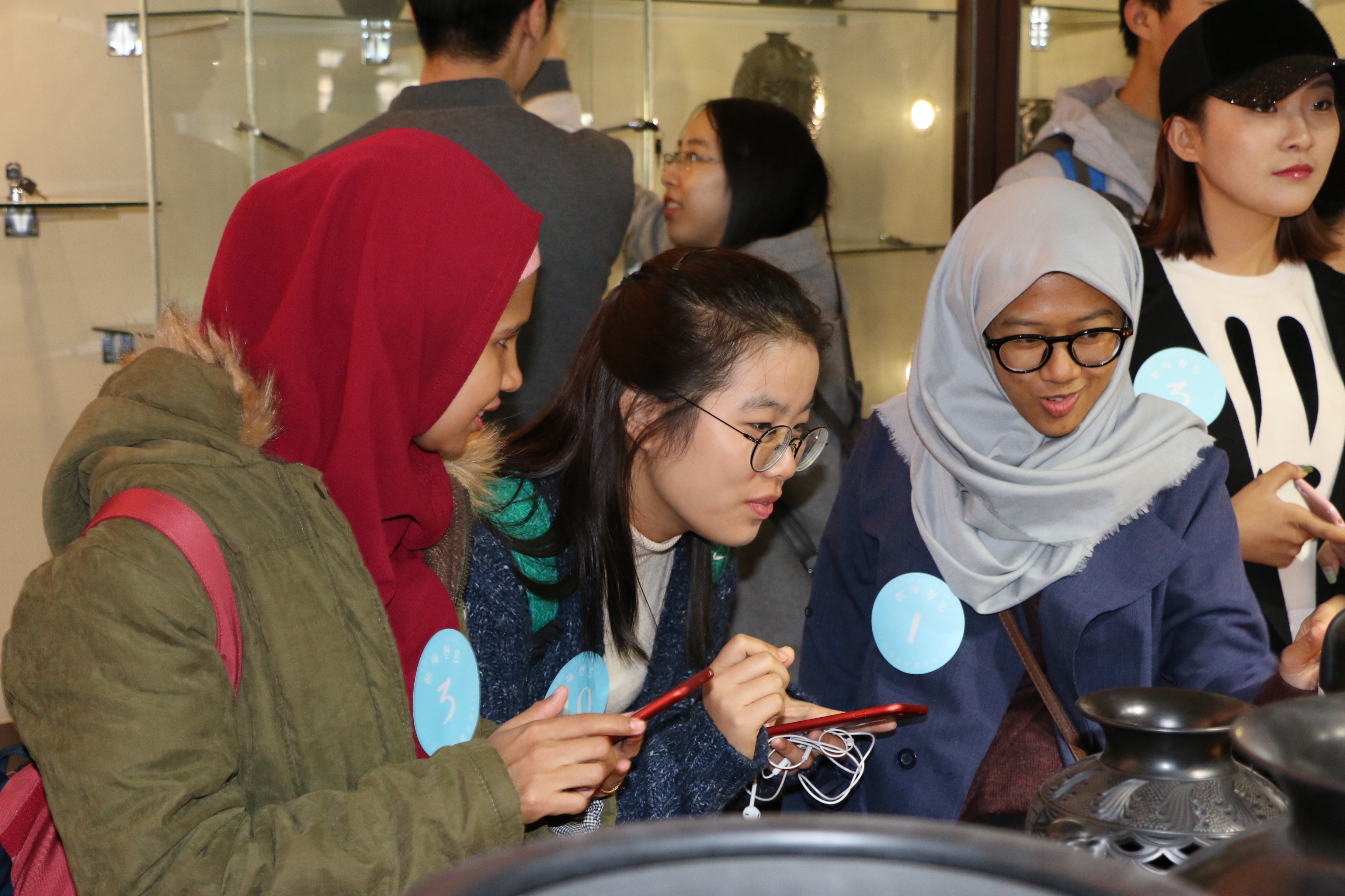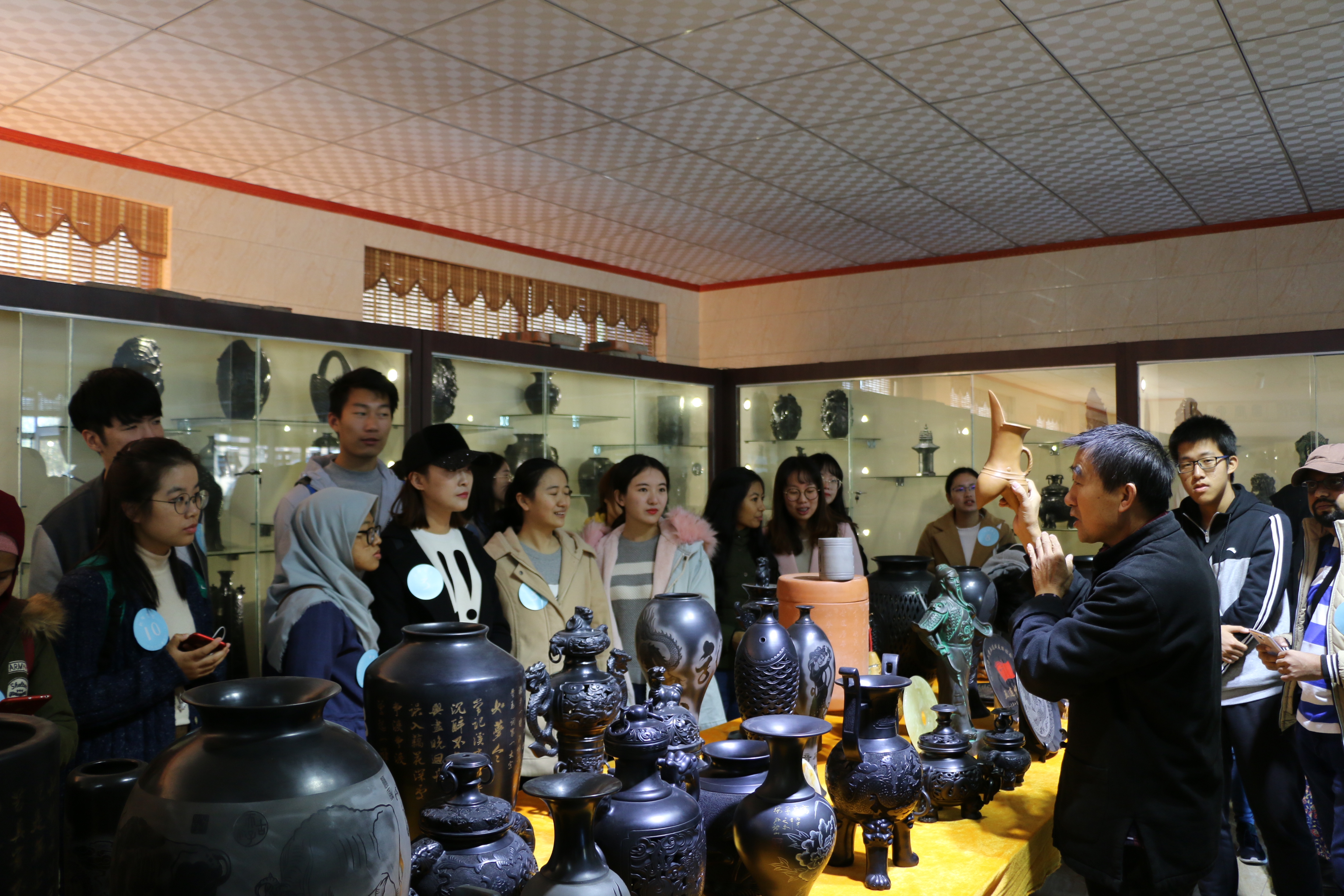抵达城子崖黑陶艺术馆后,山东省文化馆社会文化服务部主任徐欣对山大师生的到来表示热烈欢迎,希望同学们能够通过这次活动真切地感受到中国传统文化的灵动。山东省文化馆特别邀请到山东省工艺美术大师、中国黑陶非物质文化遗产传承人张国庆大师到场讲解黑陶文化,指导制陶技巧。中外员工们都因龙山黑陶的古朴大方惊艳不已。张老先生在介绍自己作品的同时,还不忘跟在场的职工说:“黑陶是中国的宝贝,是我们不可多得的传统文化,希望你们能够从我的讲解和作品里体会到这些文化,也希望你们能够喜欢。”