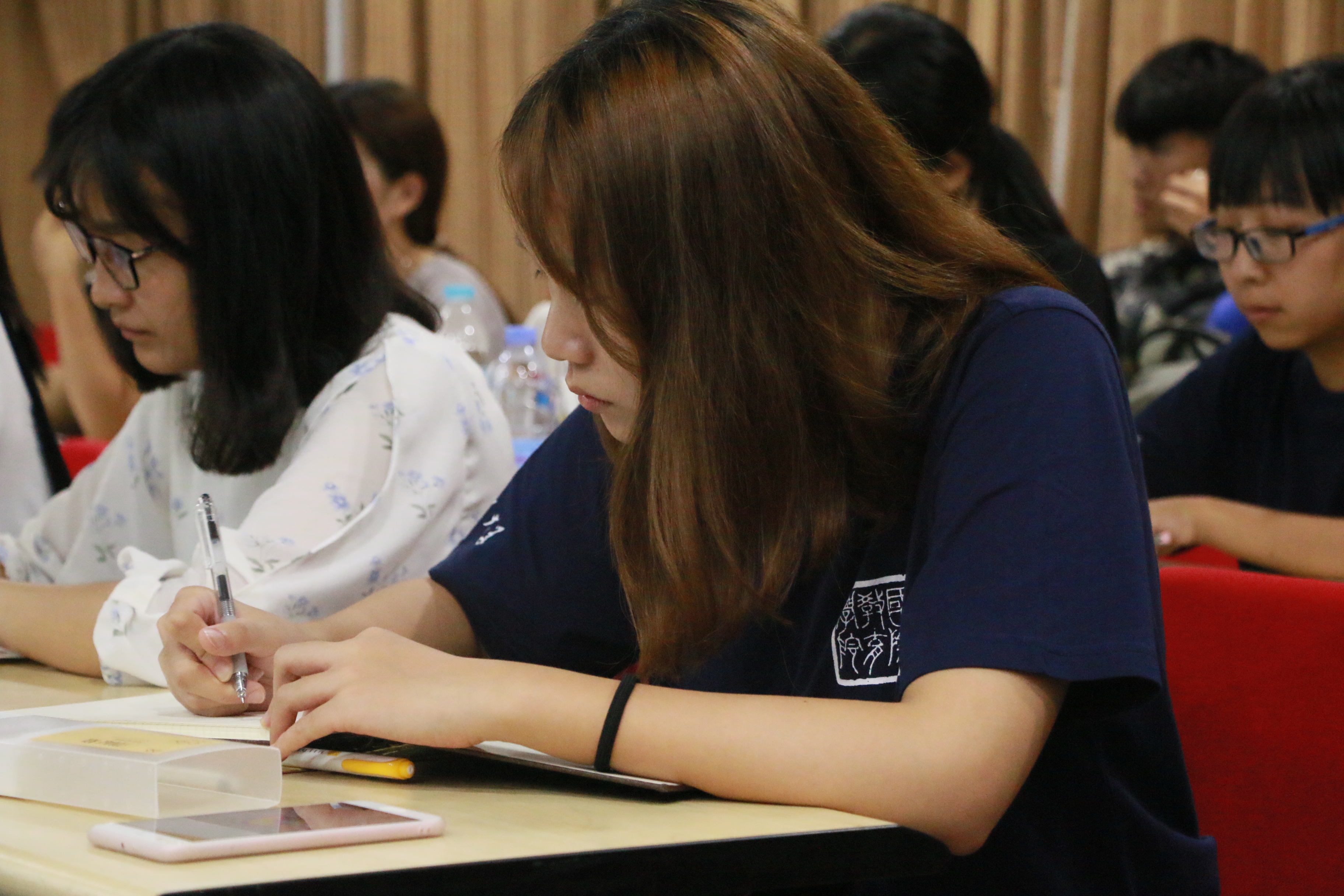 讲座开始前,两位教务老师认真查验了新生的录取通知书等相关证件材料,严格审查入学资格。