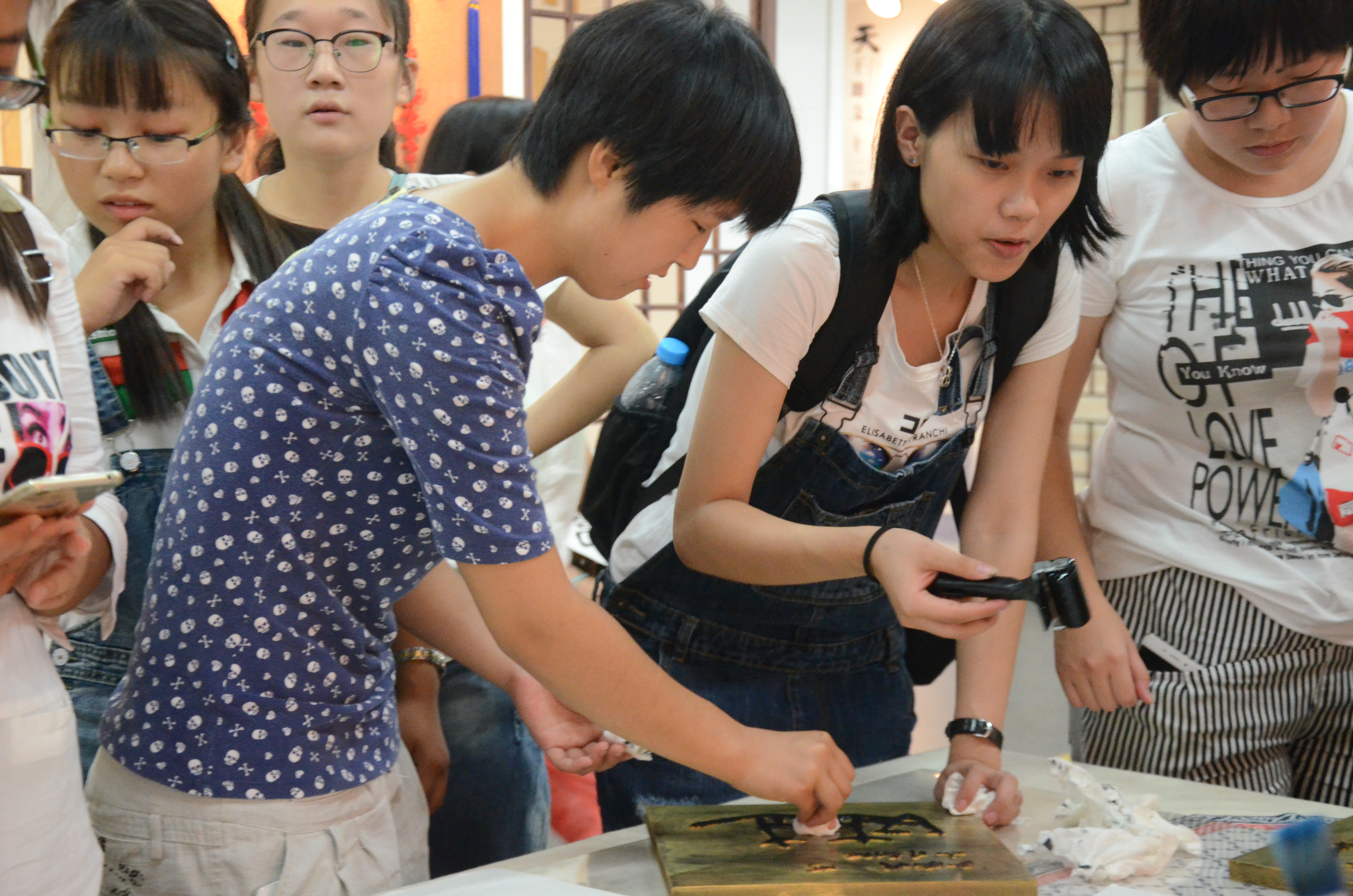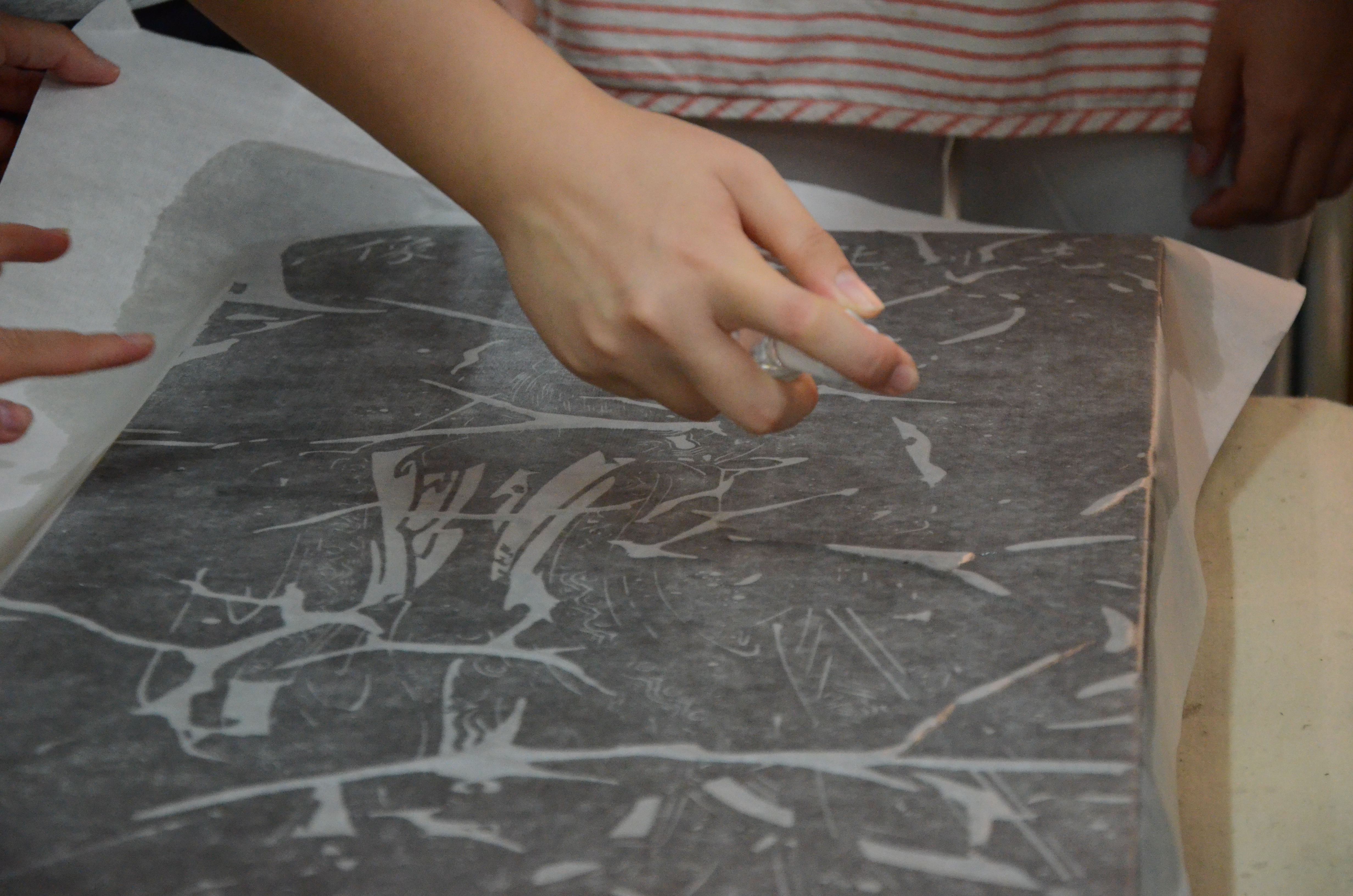 紧接着,在老师的带领下,同学们亲自动手完成了碑拓和十二生肖的拓片。“书窗醉月,翰墨留香”,虽然作品并不完美,但同学们同样在纸墨之间体会到了拓印艺术的乐趣。