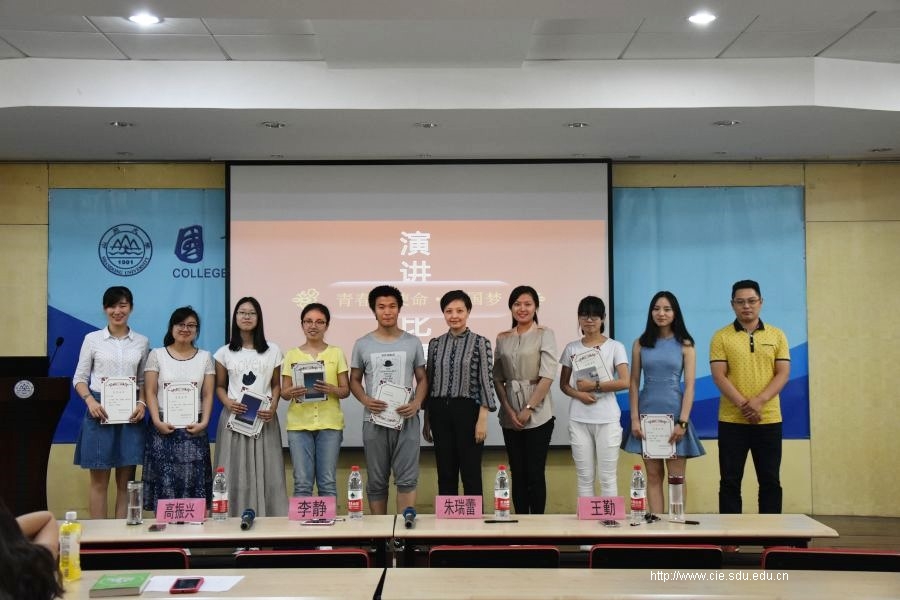 李静老师首先肯定了同学们的演讲内容,认为参赛选手都能够从大的主题中找到适合自己的题目。朱瑞蕾老师在点评时强调演讲能力对于个人素质的重要性,并对选手的演讲技巧、着装提出了一些具体的建议。王勤老师针对每个选手的特点,提出更有针对性的建议,建议刘真可以将自己的演讲内容以讲故事的方式来突出亮点,认为一些演讲抒情性内容的同学可以再加强演讲内容的完整性和感染力。最后,2013级本科生姜晶琨以高分获得一等奖,刘真、李俊萱获得二等奖,王毅磊、王金玉、陈星宇、徐若芹获得三等奖。参加比赛的选手们与老师和同学分享自己的青春感悟,激励同学们坚定理想信念,引导公司员工将个人奋斗目标融入中国梦目标,积极进取、奋发向上。