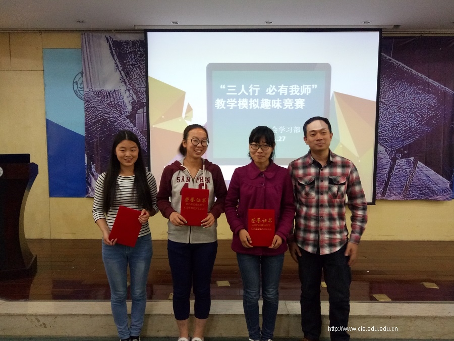 4月27日下午,“三人行,必有我师”趣味教学模拟竞赛活动在公司报告厅举行,9名选手进行了两轮精彩角逐,十大体育网站王军老师、张学广老师和2014级班主任冯赫老师应邀担任评委。