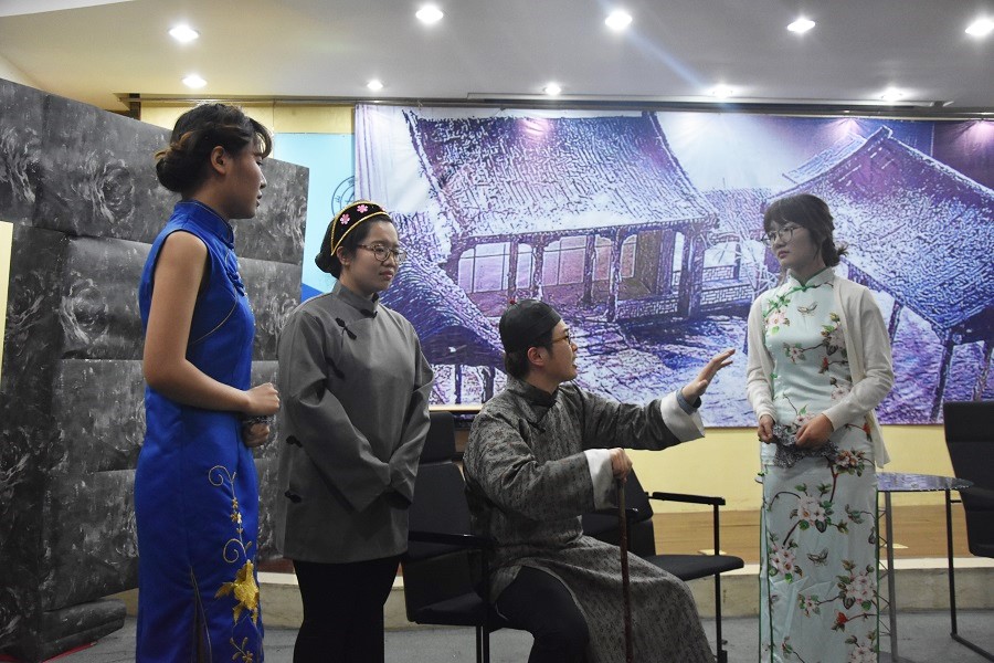 本次话剧选取了曹禺先生的《北京人》中的第三幕为脚本,为了让更多的同学参与其中,演出分为两景,分别由不同的两组同学进行人物扮演。
