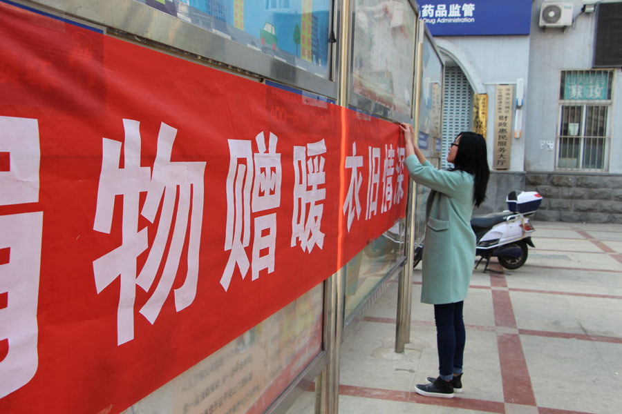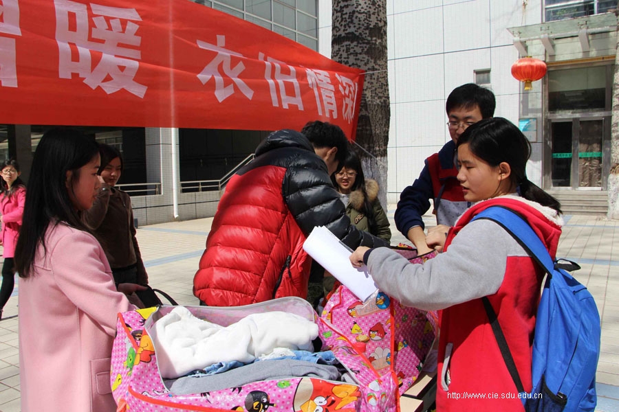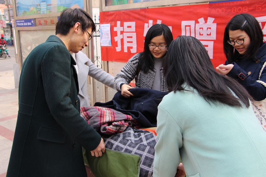 历时三天,志愿者们收获满满。3月12日,周六,伴随着清晨的寒意,志愿者们走进百花公园社区,拉起横幅,摆好桌子,热情地向来往的居民介绍本次活动。听说是为了“做好事”,居民们积极响应,纷纷把旧衣物拿到募捐台。有的家长带着孩子来募捐,献上一份爱心的同时,也向孩子传递了一种社会责任感。还有一位年过九旬的老人,捐献衣物的同时还为志愿者送来了点心,让志愿者们感动不已。居民们陆陆续续拿来自家的旧衣服,当志愿者们向他们表示感谢时,居民们朴实地说到:“这有什么好谢的,这不是我们应该做的吗。”早春的风依然透着寒气,志愿者们的心却被大家的善举温暖了。接下来的两天志愿者们在中心校区食堂门口继续开展衣物回收工作,接受同学们的爱心。