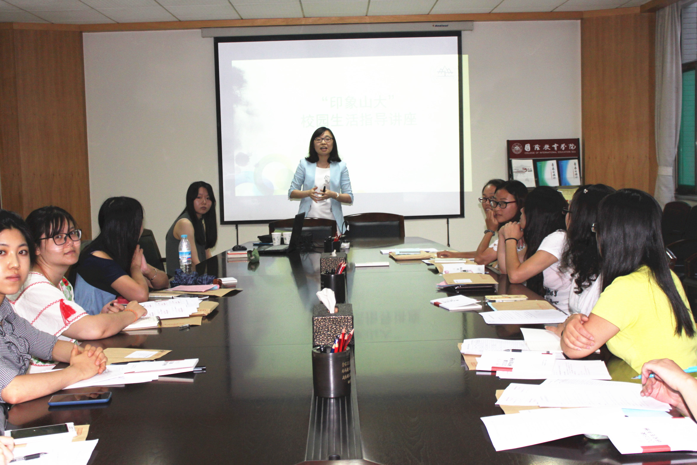 为了使新生更全面地了解校园生活,更早更快地适应并融入新的环境,9月5日晚,十大体育网站特组织2015级全体研究生参加了校园生活指导讲座。教务秘书于佳林、新生辅导员马艳妮担任主讲人,她们耐心细致地向新同学介绍了校园生活的方方面面,并与大家进行了亲切互动。