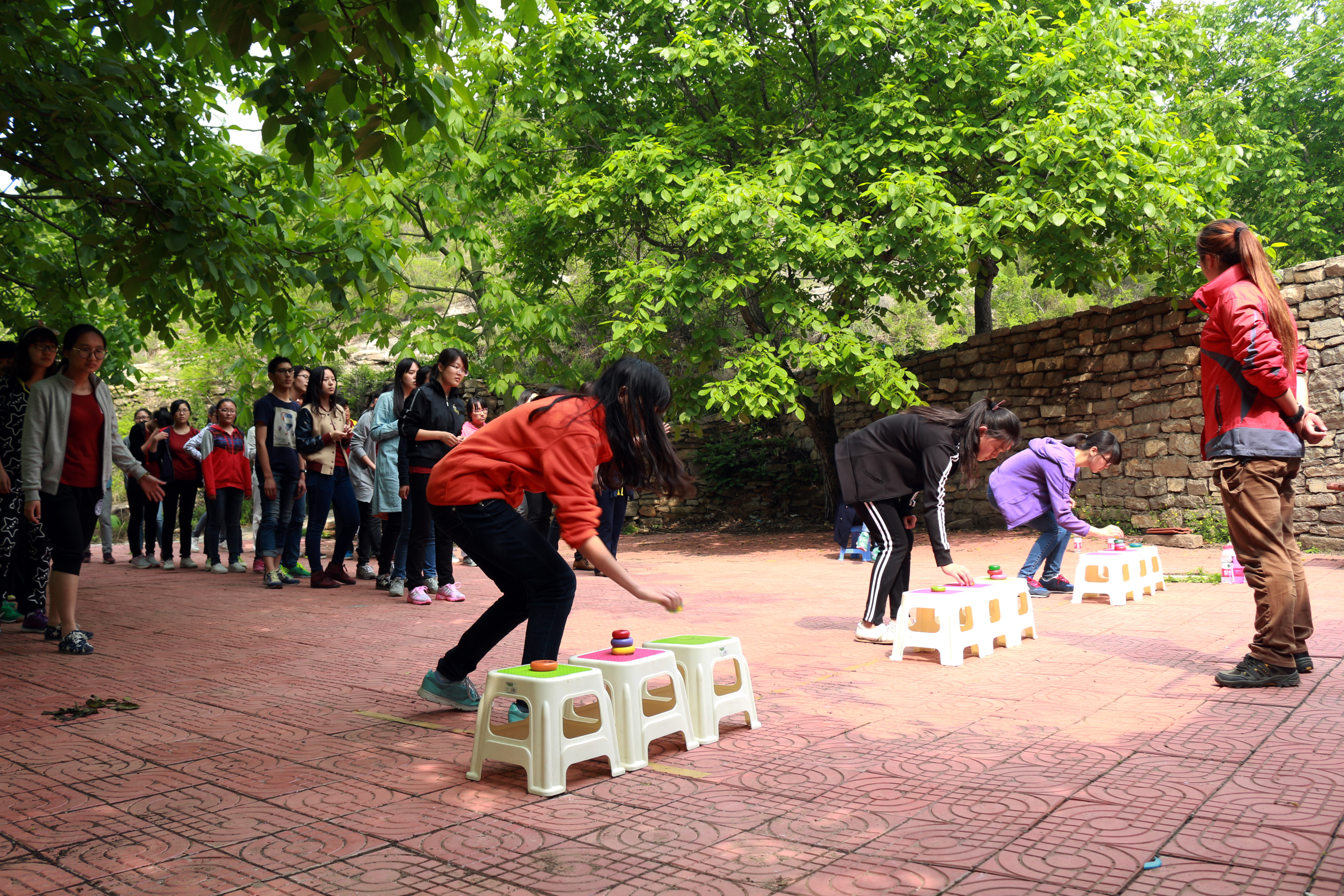 上午9时左右,中、外员工乘大巴车到达波罗峪。稍作调整,全体成员分成三组队伍之后便由教练组织开展第一个环节---简单的转体训练,起初由于职工听不懂口令而导致犯规,但是经过中国员工的帮助和他们自身的努力,同学们最终出色完成了任务。紧接着,另一名教练对同学们进行了“训前动员大会”。按照要求,最后确定一队为“英雄联盟”队,二队为“追梦”队,三队为“咱们都”队。各队风格迥异、创意十足,彰显别样的青春风采。
